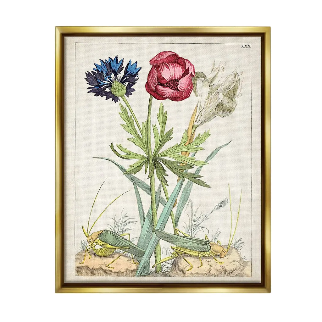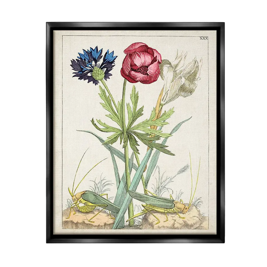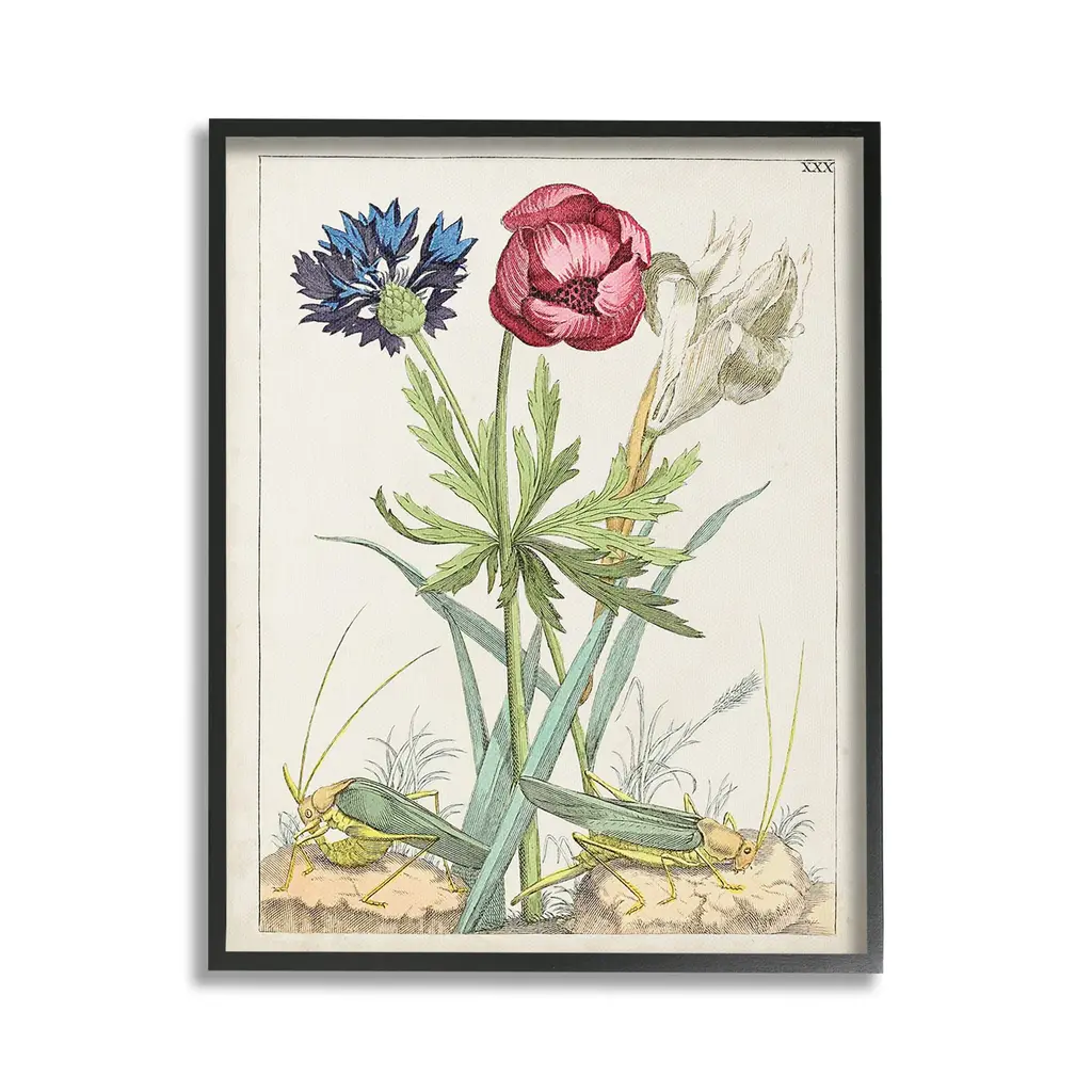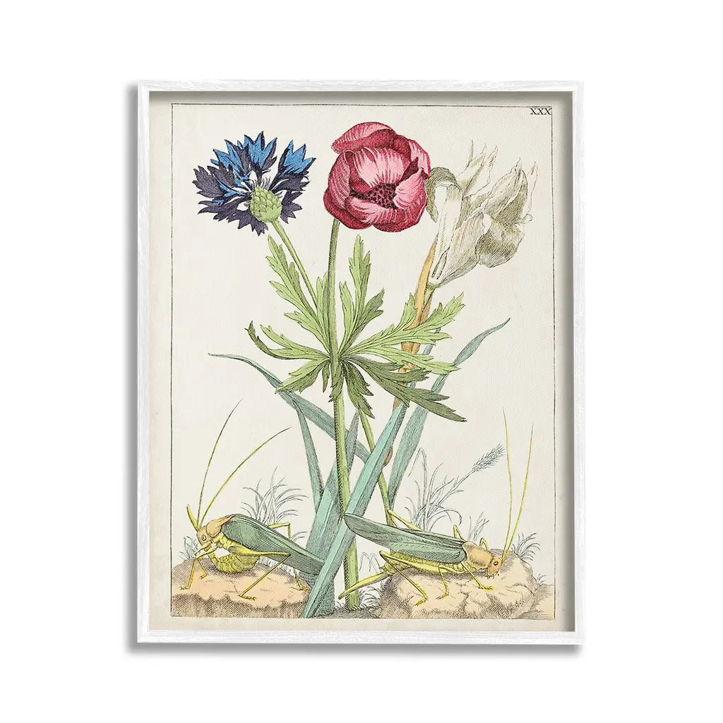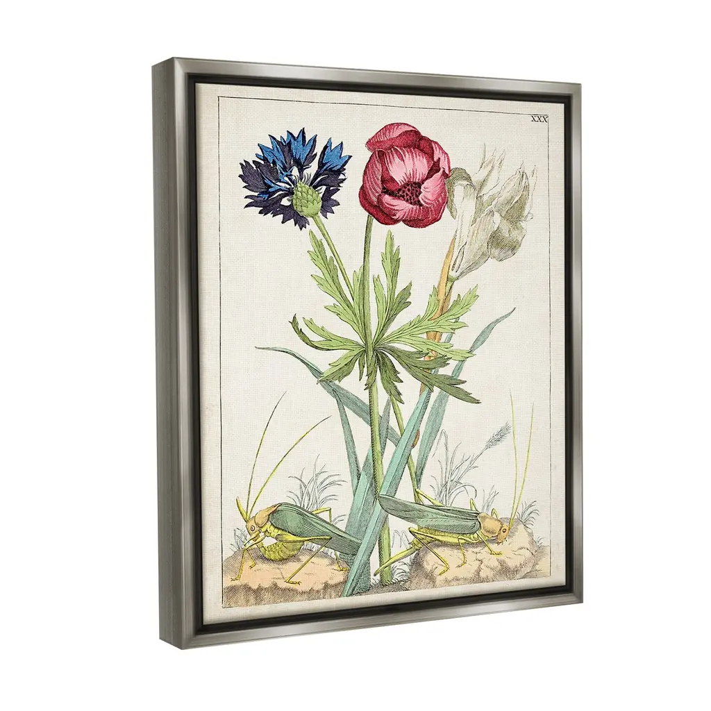 Elevate your home or office to the next level with Stupell Framed Floating Canvas Wall Art. Our premium hand-stretched canvas is mounted securely into a sturdy lightweight frame. The museum-style gap between the wrapped canvas and the box frame gives the illusion of floating artwork. Stupell Wall Art is made in the USA.Features: Dimensions: 17 x 1.7 x 21 Frame, 16 x 1.5 x 20 Canvas ArtFloating Frame Canvas Products are available in sizes 17"x21" and 25"x31". All Floating Frame Canvas Products have a 1.7" Depth.Wall Art is Ready to Hang with Hardware Free Hanging. No Installation required. For Easy Set Up Lean or Layer Artwork on Shelf or Against Wall. Artwork is Permently Fixed into the Frame.Our elevated 1.7" Thick Floating Frame is the perfect complement to our canvas style Wall Art. We use only the highest quality inks in house with industry leading printing solutions. Canvas is hand stretched over a durable wood foundation and then mounted securly into a Modern Box Frame. Made in the USA.Artwork Relates To: Animal, Plant, Nature, Botanical, Plant, Traditional, Study, Vintage, Cottage, Country, Leaf, Insect, Grasshopper, CricketDesign by World Art Group