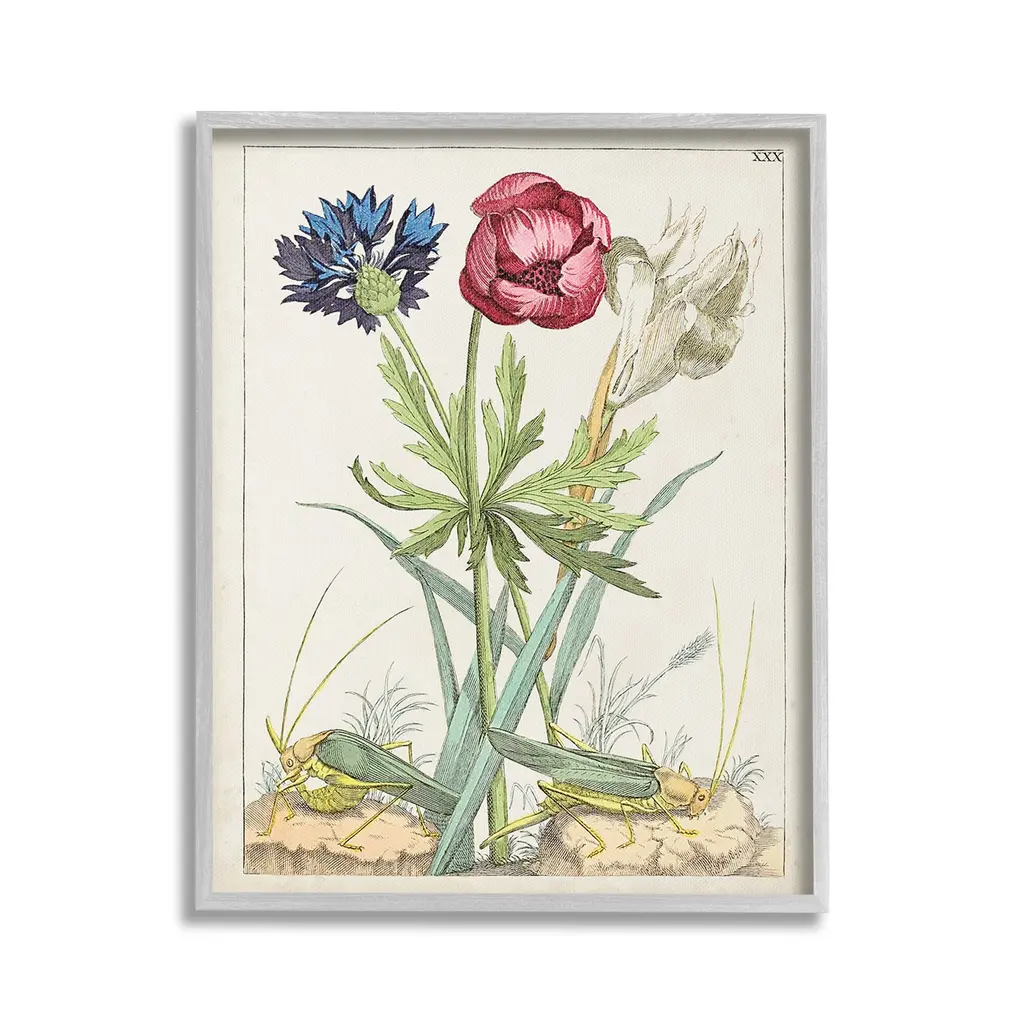 Stupell Blooming Bulbs & Grasshoppers Framed Floater Canvas Wall Art Design By World Art Group - 25 X 31 - Grey