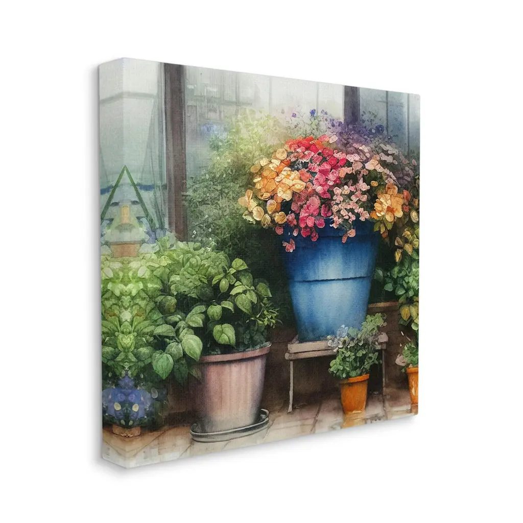 Proudly made in the USA, Our stretched canvas is created with the highest standards. We use only the highest quality inks and canvas on our in house Mimaki printers, and then hand cut and stretch each piece over a 1.5 inch thick wooden frame for hanging. The art comes ready to hang with no installation required.Features: Dimensions: 17 x 1.5 x 17 InchesStretched Canvas Sizes Include Standard: 17 x 1.5 x 17 Large: 24 x 1.5 x 24 X-Large: 30 x 1.5 x 30 Oversized: 36 x 1.5 x 36Wall Art is Ready to Hang - No Installation or Hardware Needed. For Easy Set Up Lean or Layer Artwork on Shelf or Against Wall.Our stretched canvas is created with the highest standards. We use only the highest quality inks and canvas on our in house Mimaki printers, and then hand cut and stretch each piece over a 1.5 inch thick wooden frame for hanging. Made In USA.Artwork Relates To: Potted Plant, Plant, Flower, Garden, Window, Gardening, Planter, GreenhouseDesign by Alpenglow Workshop