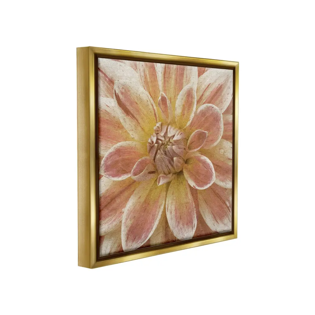 Stupell Blooming Petals Close Up Framed Floater Canvas Wall Art Design By Alonzo Saunders - 18 X 18 - Gold