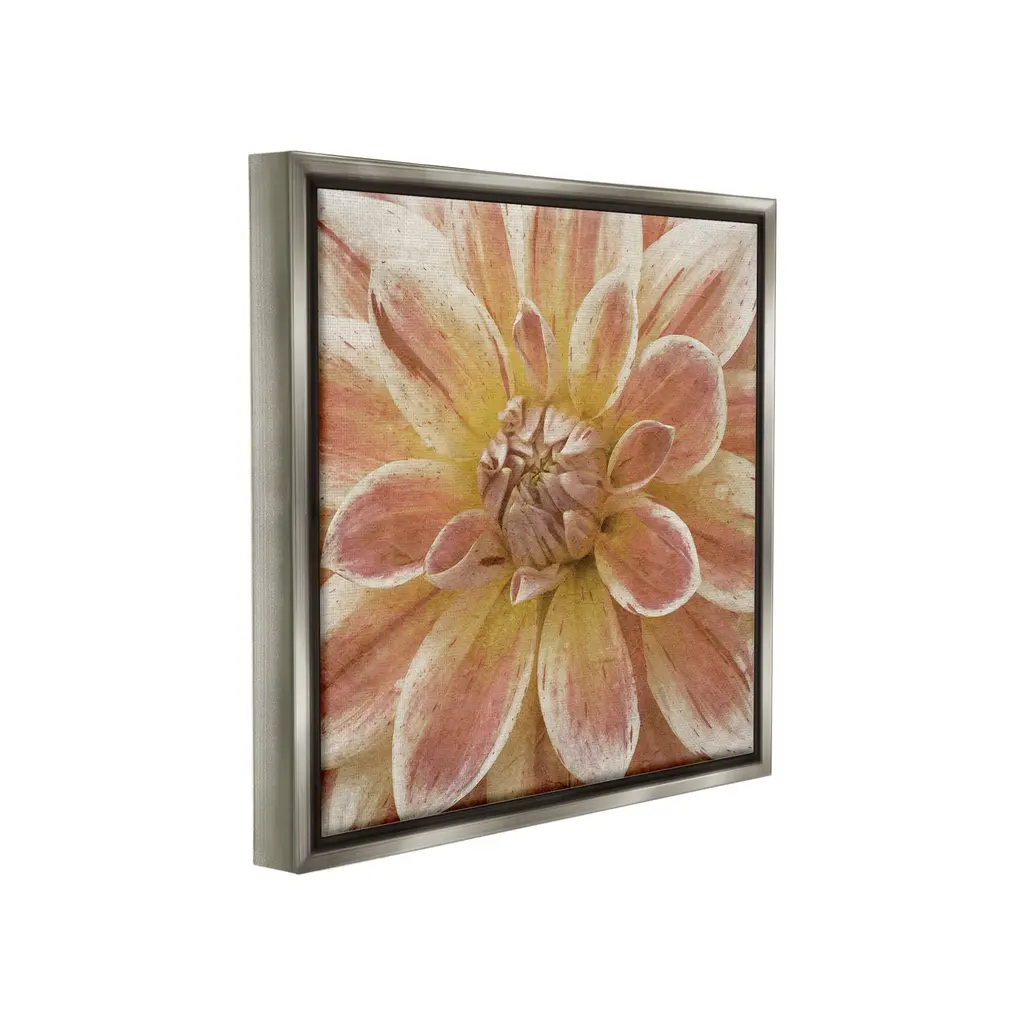 Stupell Blooming Petals Close Up Framed Floater Canvas Wall Art Design By Alonzo Saunders - 18 X 18 - Grey