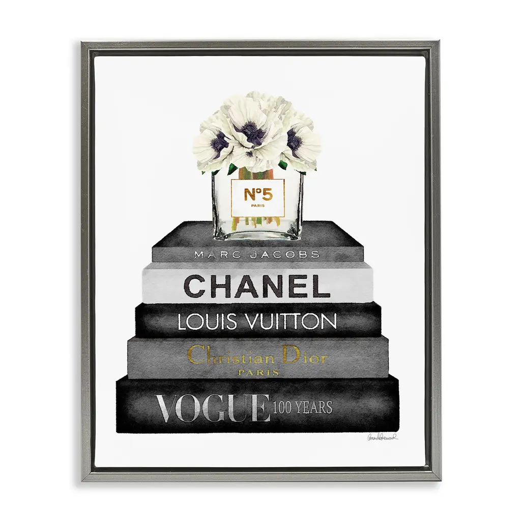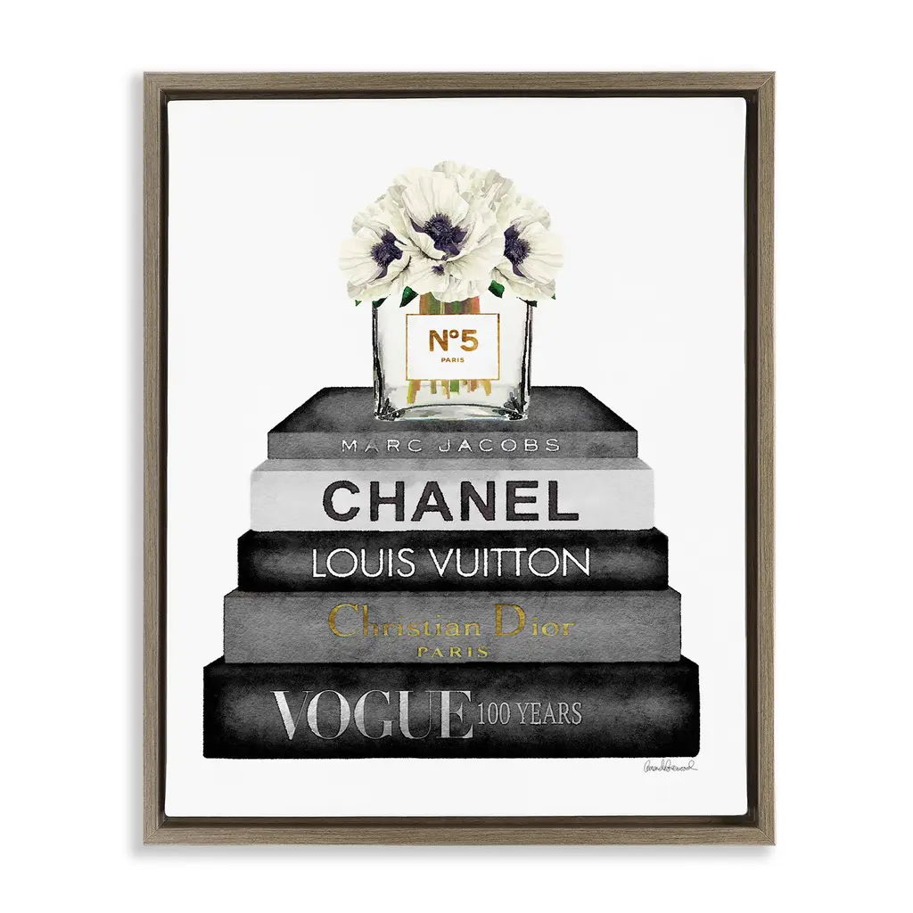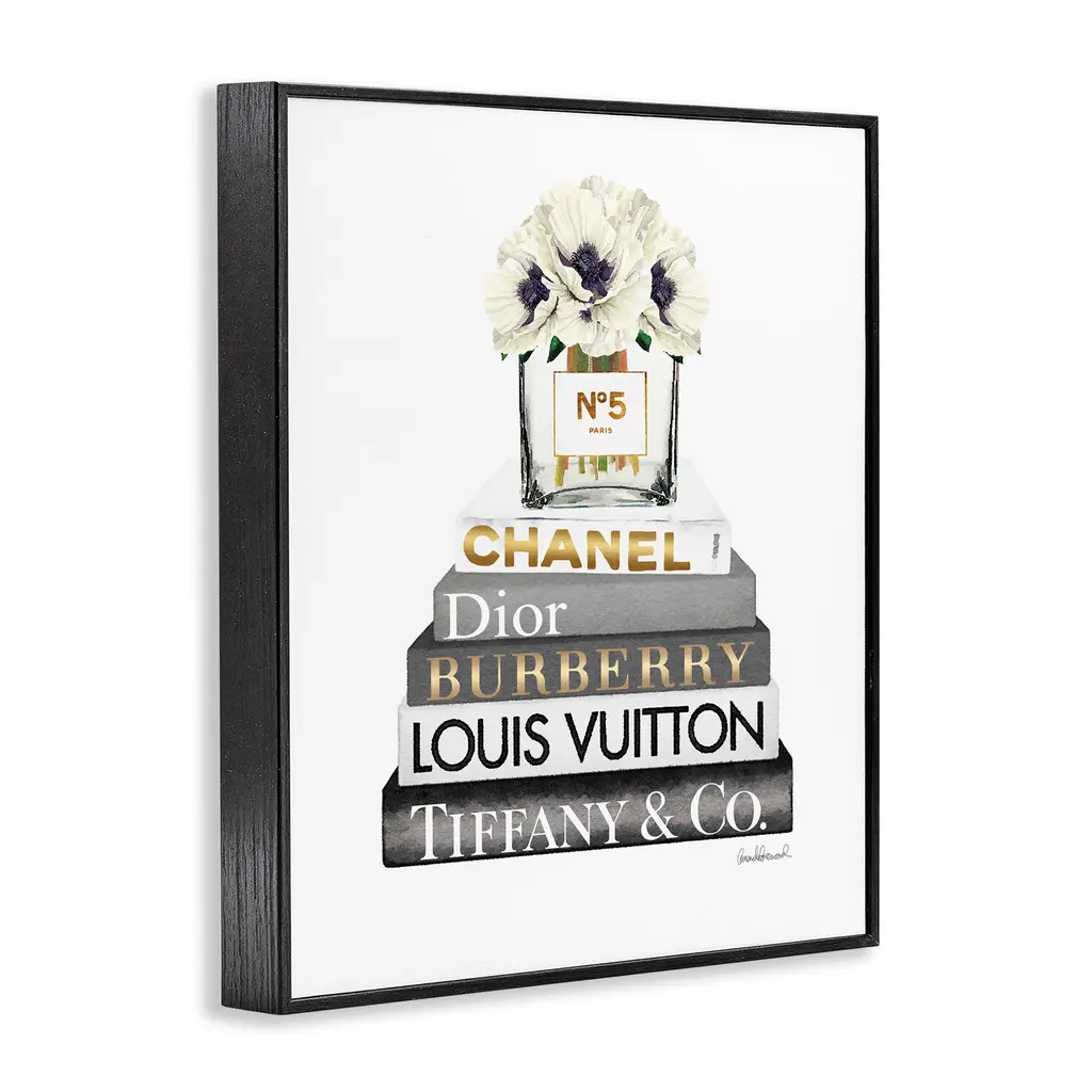 Stupell Blooming White Floral Display On Glam Designer Bookstack Framed Wall Art - Multi-Color - 11 X 14 - Grey