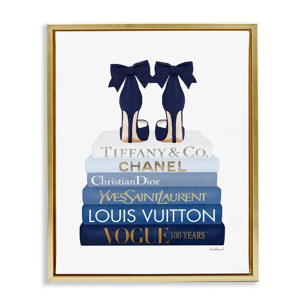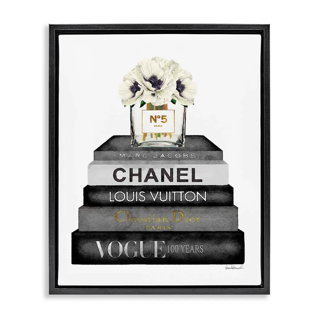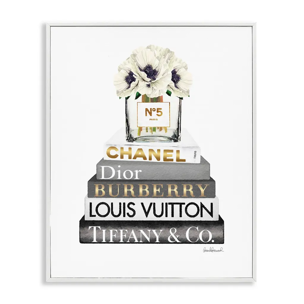 Stupell Blooming White Floral Display On Glam Designer Bookstack Framed Wall Art - Multi-Color - 11 X 14 - Grey