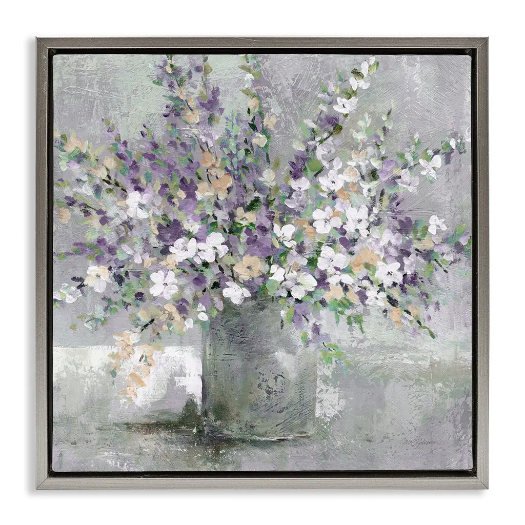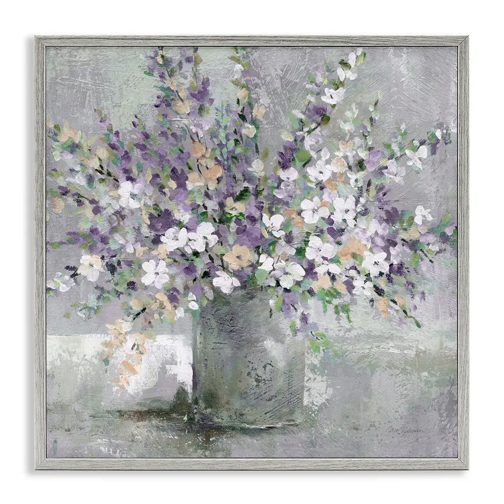Stupell Blossoming Aster Flower Bouquet Soft Purple Bouquet Painting Framed Giclee Texturized Art By Carol Robinson - 24 X 24 - Black