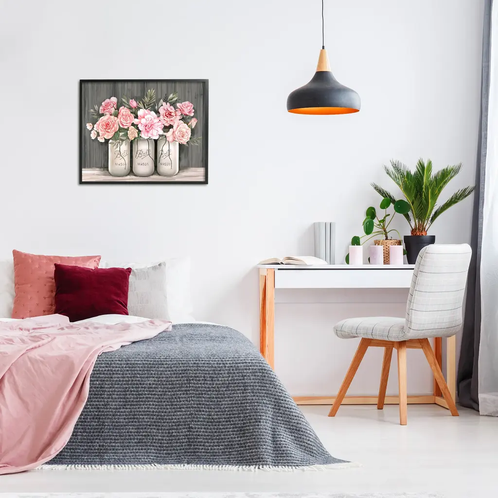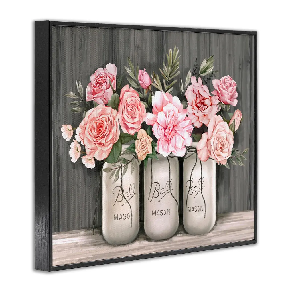 Stupell Blossoming Pink Rose Bouquets Rustic Country Jars Framed Wall Art - 24 X 30 - Black
