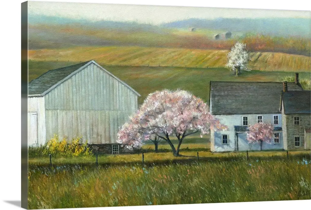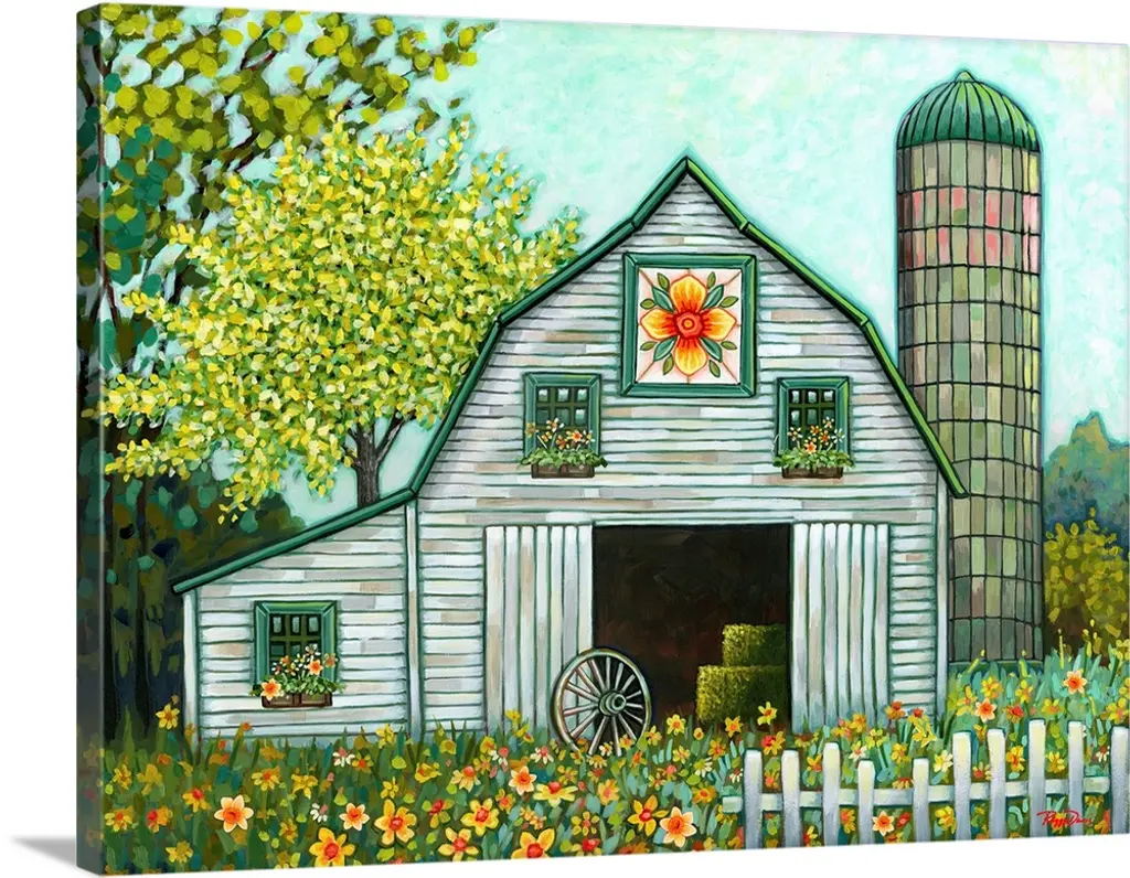 Proudly made in the USA, Our stretched canvas is created with the highest standards. We use only the highest quality inks and canvas on our in house Mimaki printers, and then hand cut and stretch each piece over a 1.5 inch thick wooden frame for hanging. The art comes ready to hang with no installation required.Features: Wall Art is Ready to Hang - No Installation or Hardware Needed. For Easy Set Up Lean or Layer Artwork on Shelf or Against Wall.Our stretched canvas is created with the highest standards. We use only the highest quality inks and canvas on our in house Mimaki printers, and then hand cut and stretch each piece over a 1.5 inch thick wooden frame for hanging. Made In USA.Artwork Relates To: Outdoors; Painting; Nature; Animal; Bird; Building; Countryside; Rural; Farm; Plant; Flower; Blossom; Housing; Barn; Design by Pam Britton