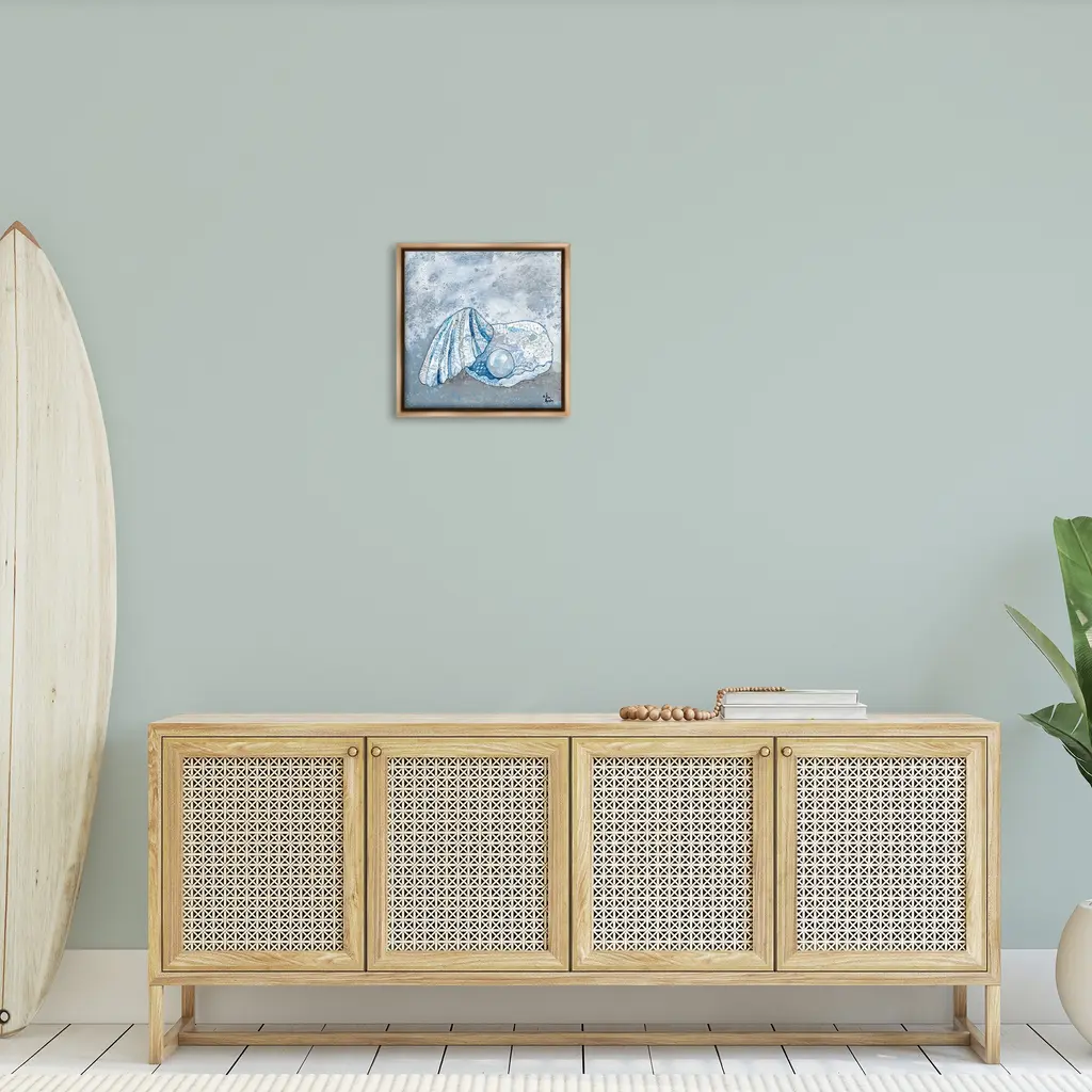 Elevate your home or office to the next level with Stupell Framed Floating Canvas Wall Art. Our premium hand-stretched canvas is mounted securely into a sturdy lightweight frame. The museum-style gap between the wrapped canvas and the box frame gives the illusion of floating artwork. Stupell Wall Art is made in the USA.Features: Dimensions: 18 x 1.7 x 18 Frame, 17 x 1.5 x 17 Canvas ArtFloating Frame Canvas Products are available in sizes 18"x18" and 25"x25". All Floating Frame Canvas Products have a 1.7" Depth.Wall Art is Ready to Hang with Hardware Free Hanging. No Installation required. For Easy Set Up Lean or Layer Artwork on Shelf or Against Wall. Artwork is Permently Fixed into the Frame.Our elevated 1.7" Thick Floating Frame is the perfect complement to our canvas style Wall Art. We use only the highest quality inks in house with industry leading printing solutions. Canvas is hand stretched over a durable wood foundation and then mounted securly into a Modern Box Frame. Made in the USA.Artwork Relates To: Nautical, Sea Life, Clam, Seashell, Abstract, Pattern, Pearl, AbstractDesign by Lisa Morales