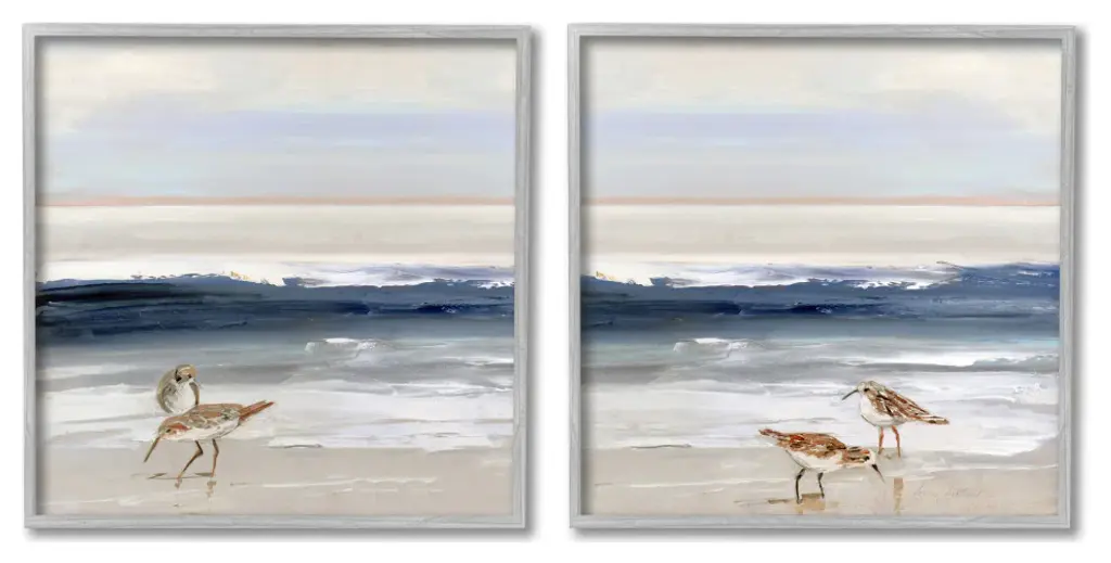 Add dimension to any room with our textured Framed Giclee Artwork. Our framed artwork is securely mounted into a 1.5-inch thick wood grain frame and ready to hang. Frames are available in three alluring styles: black, gray farmhouse and white. In addition, you should check out our oversized options if you want a statement piece. Stupell Wall Art is made in the USA.Features: Dimensions: 12 x 1.5 x 12 FramedFramed Giclee Sizes Include Standard: 12 x 1.5 x 12 Large: 17 x 1.5 x 17 Oversized: 24 x 1.5 x 24Wall Art is Ready to Hang - No Installation or Hardware Needed. For Easy Set Up Lean or Layer Artwork on Shelf or Against Wall.Our giclée prints are carefully mounted on a durable MDF backing, and then perfectly finished in a 1.5 inch thick woodgrain frame. Mounted frame colors include black, gray farmhouse and white. Made In USA.Artwork Relates To: Animal, Bird, Sandpiper, Waterfowl, Painting, Nature, Outdoors, Sea, Water, Shoreline, Beach, Coast, Design by Kathleen Broaderick