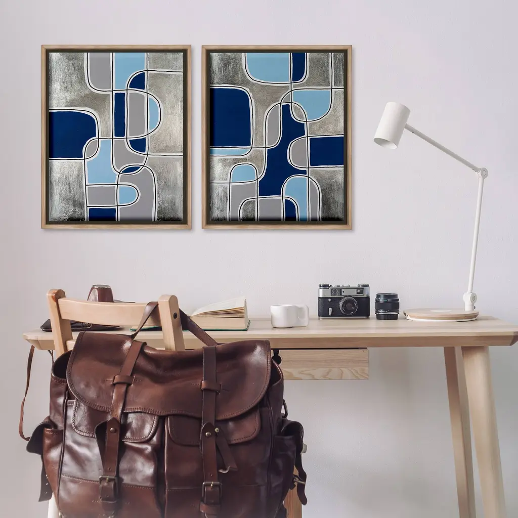 Elevate your home or office to the next level with Stupell Framed Floating Canvas Wall Art. Our premium hand-stretched canvas is mounted securely into a sturdy lightweight frame. The museum-style gap between the wrapped canvas and the box frame gives the illusion of floating artwork. Stupell Wall Art is made in the USA.Features: Dimensions: 2 Piece Set, Each Frame is 17 x 1.7 x 21Two Piece Floater Framed Canvas are available as 17x21 or 25x31 Panels. All Floater Frame Products have a 1.7" Depth.Wall Art is Ready to Hang with Hardware Free Hanging. No Installation required. For Easy Set Up Lean or Layer Artwork on Shelf or Against Wall. Artwork is Permently Fixed into the Frame.Our elevated 1.7" Thick Floating Frame is the perfect complement to our canvas style Wall Art. We use only the highest quality inks in house with industry leading printing solutions. Canvas is hand stretched over a durable wood foundation and then mounted securly into a Modern Box Frame. Made in the USA.Artwork Relates To: Modern, Abstract, Geometric, PatternDesign by Michael Willett