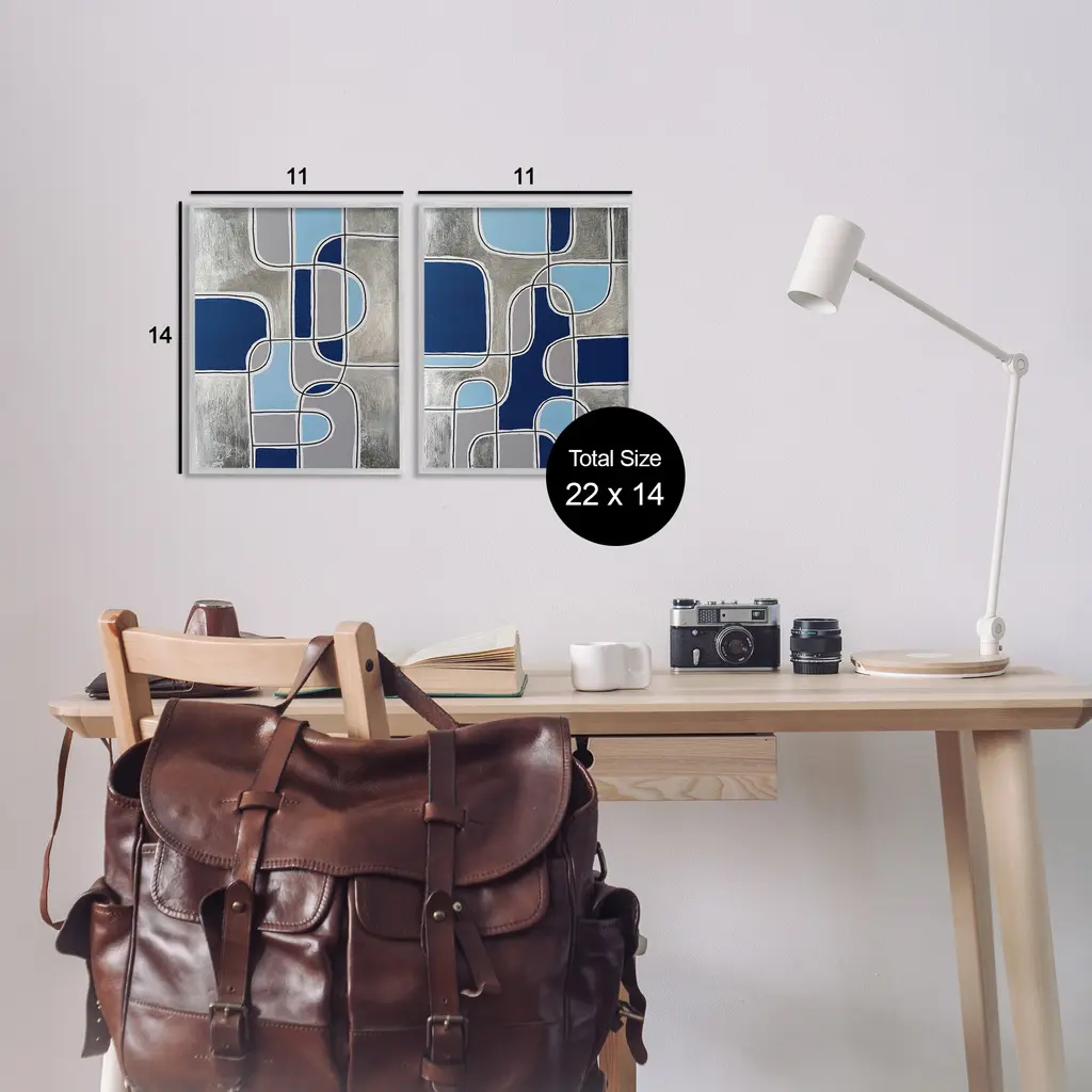 Stupell Blue & Grey Geometrics Framed Giclee Art Design By Michael Willett (Set Of 2) - 11 X 14 - Grey