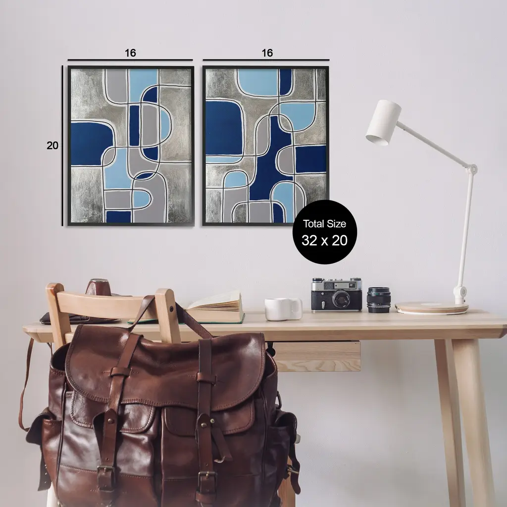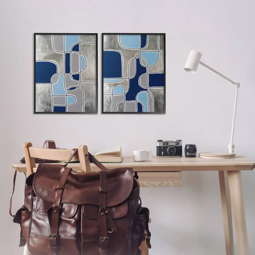 Stupell Blue & Grey Geometrics Framed Giclee Art Design By Michael Willett (Set Of 2) - 16 X 20 - Black