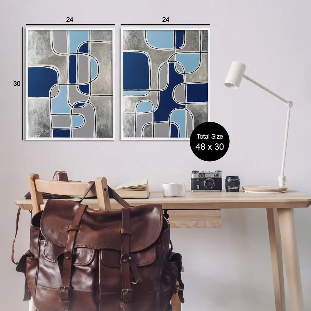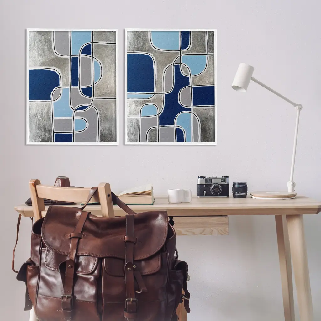 Stupell Blue & Grey Geometrics Framed Giclee Art Design By Michael Willett (Set Of 2) - 24 X 30 - White