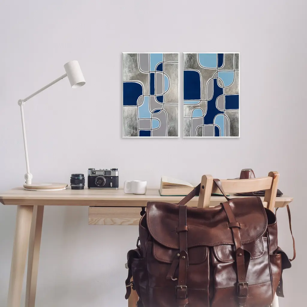 Fill any space with Stupell Wall Art Sets. Our wall plaques start as high-quality lithograph prints mounted on durable 0.5-inch thick MDF wood. Each piece is hand finished and comes with a fresh layer of white foil on the sides to give it a crisp, clean look. Plaques arrive ready to hang without installation and come with removable plastic corners to keep them from damage in transit. Stupell Wall Art is made in the USA.Features: Dimensions: 2 Piece Set, Each Panel is 10 x 0.5 x 15 InchesTwo Piece Wall Plaque Sets are available as 10"x15" or 13"x19" Panels. All Wall Art Plaques have a 0.5" Depth.Wall Art is Ready to Hang with Hardware Free Hanging. No installation required. For Easy Set Up Lean or Layer Artwork on Shelf or Against Wall.All of our wall plaques start off as high quality lithograph prints that are then mounted on durable 0.5 inch thick MDF wood. Each piece is hand finished and comes with a fresh layer of foil on the sides to give it a crisp clean look. Made In USA.Artwork Relates To: Modern, Abstract, Geometric, PatternDesign by Michael Willett