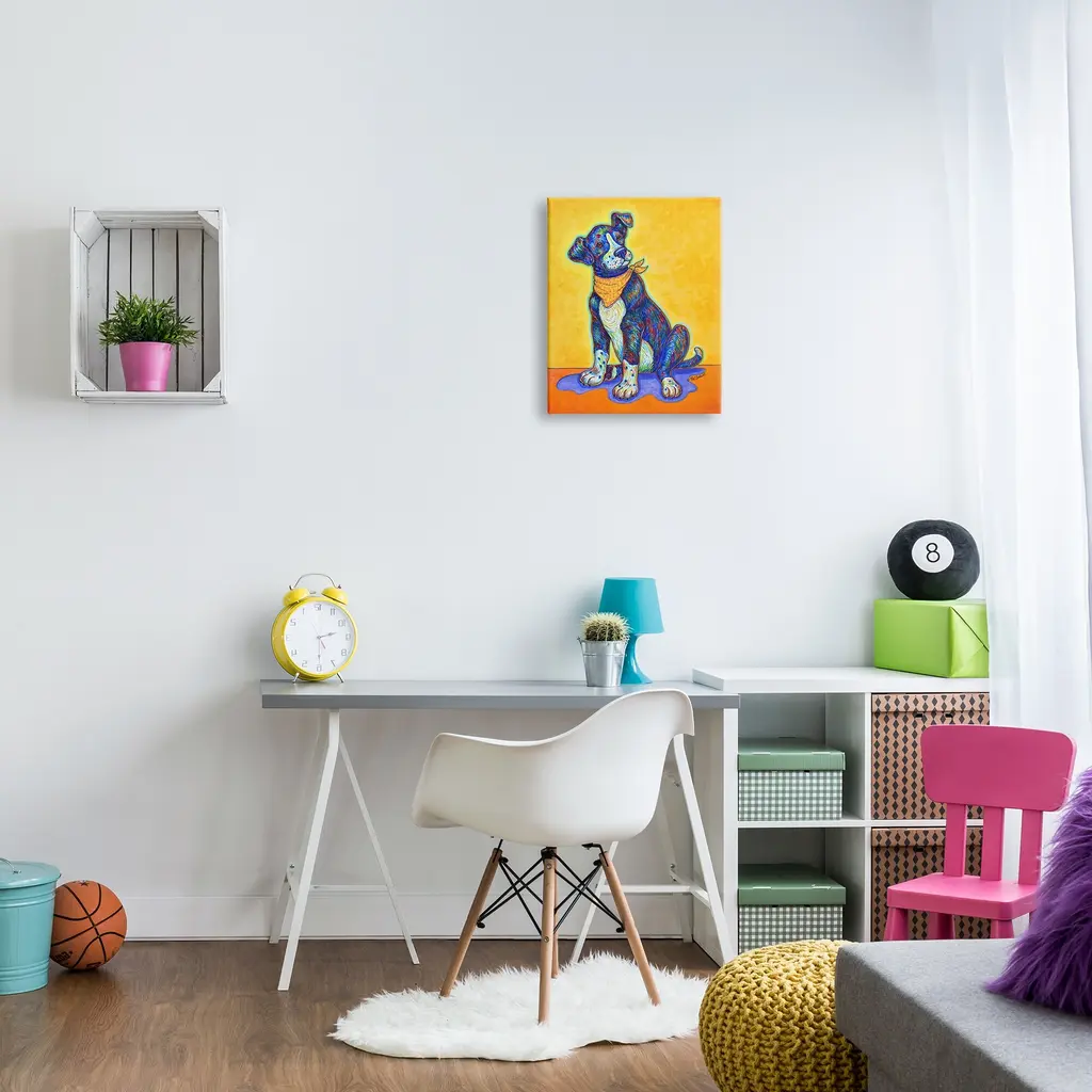 We create our stretched canvas to the highest standards. Using only the highest quality inks and canvas on Mimaki printers, we hand-cut and stretch each piece over a 1.5-inch thick wooden frame for hanging. As a result, the art comes ready to hang on the sturdy ledge with no installation required. Stupell Wall Art is made in the USA.Features: Dimensions: 16 x 1.5 x 20 InchesStretched Canvas Sizes Include Standard: 16 x 1.5 x 20 Large: 20 x 1.5 x 30 X-Large: 30 x 1.5 x 40 Oversized: 36 x 1.5 x 48Wall Art is Ready to Hang with Hardware Free Hanging. No installation required. For Easy Set Up Lean or Layer Artwork on Shelf or Against Wall.Our stretched canvas is created with the highest standards. We use only the highest quality inks and canvas on our in house Mimaki printers, and then hand cut and stretch each piece over a 1.5 inch thick wooden frame for hanging. Made In USA.Artwork Relates To: Painting, Animal, Mammal, Modern, Pet, Drawing, Canine, Dog, Puppy, AbstractDesign by Pat Cockrell