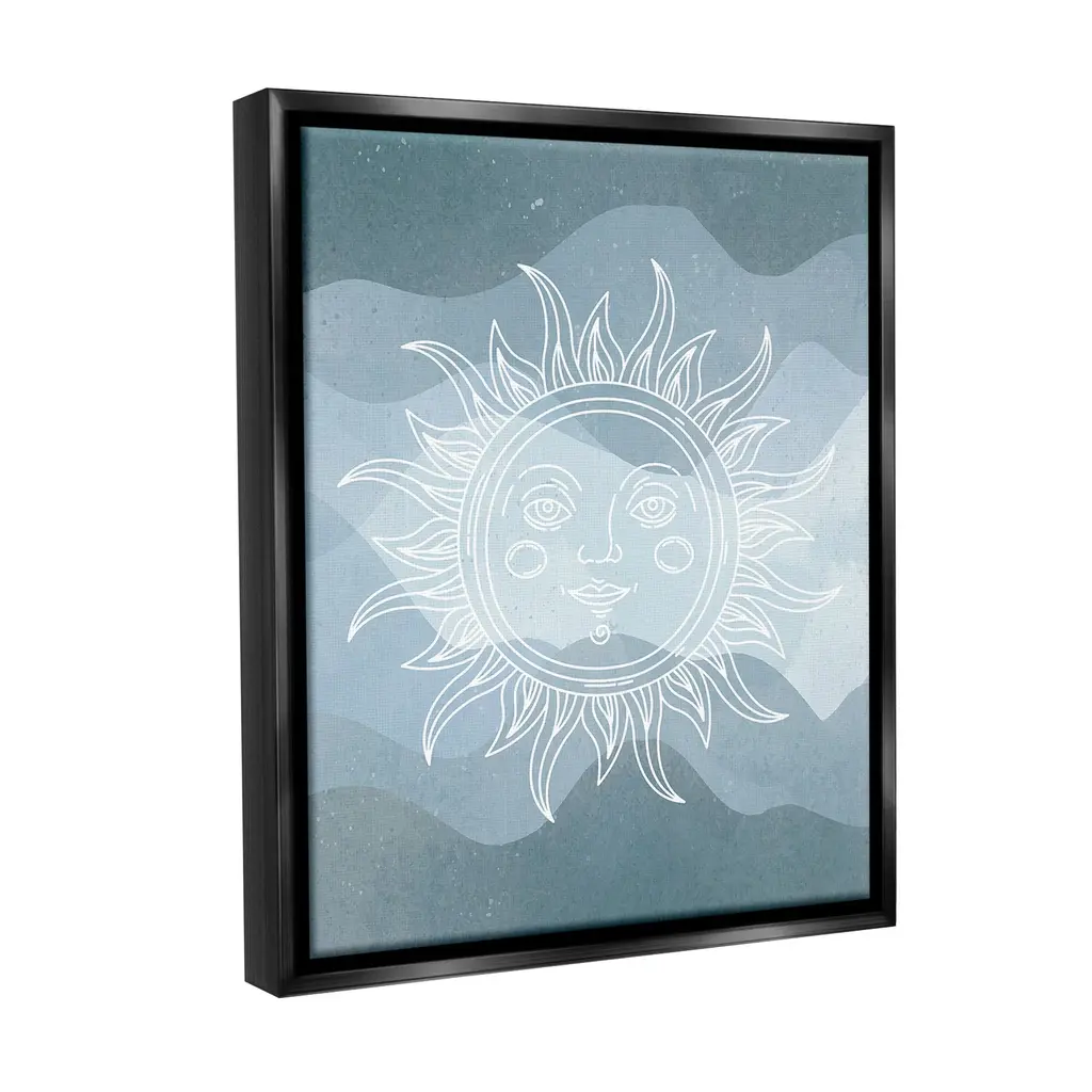 Elevate your home or office to the next level with Stupell Framed Floating Canvas Wall Art. Our premium hand-stretched canvas is mounted securely into a sturdy lightweight frame. The museum-style gap between the wrapped canvas and the box frame gives the illusion of floating artwork. Stupell Wall Art is made in the USA.Features: Dimensions: 17 x 1.7 x 21 Frame, 16 x 1.5 x 20 Canvas ArtFloating Frame Canvas Products are available in sizes 17"x21" and 25"x31". All Floating Frame Canvas Products have a 1.7" Depth.Wall Art is Ready to Hang with Hardware Free Hanging. No Installation required. For Easy Set Up Lean or Layer Artwork on Shelf or Against Wall. Artwork is Permently Fixed into the Frame.Our elevated 1.7" Thick Floating Frame is the perfect complement to our canvas style Wall Art. We use only the highest quality inks in house with industry leading printing solutions. Canvas is hand stretched over a durable wood foundation and then mounted securly into a Modern Box Frame. Made in the USA.Artwork Relates To: Boho, Nature, Astral, Celestial, Moon, Sun, Southwestern, BlueDesign by Lil' Rue
