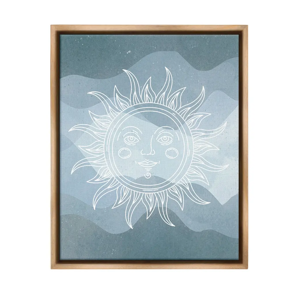 Stupell Blue Astral Sun Framed Giclee Art Design By Lil' Rue - 16 X 20 - Grey