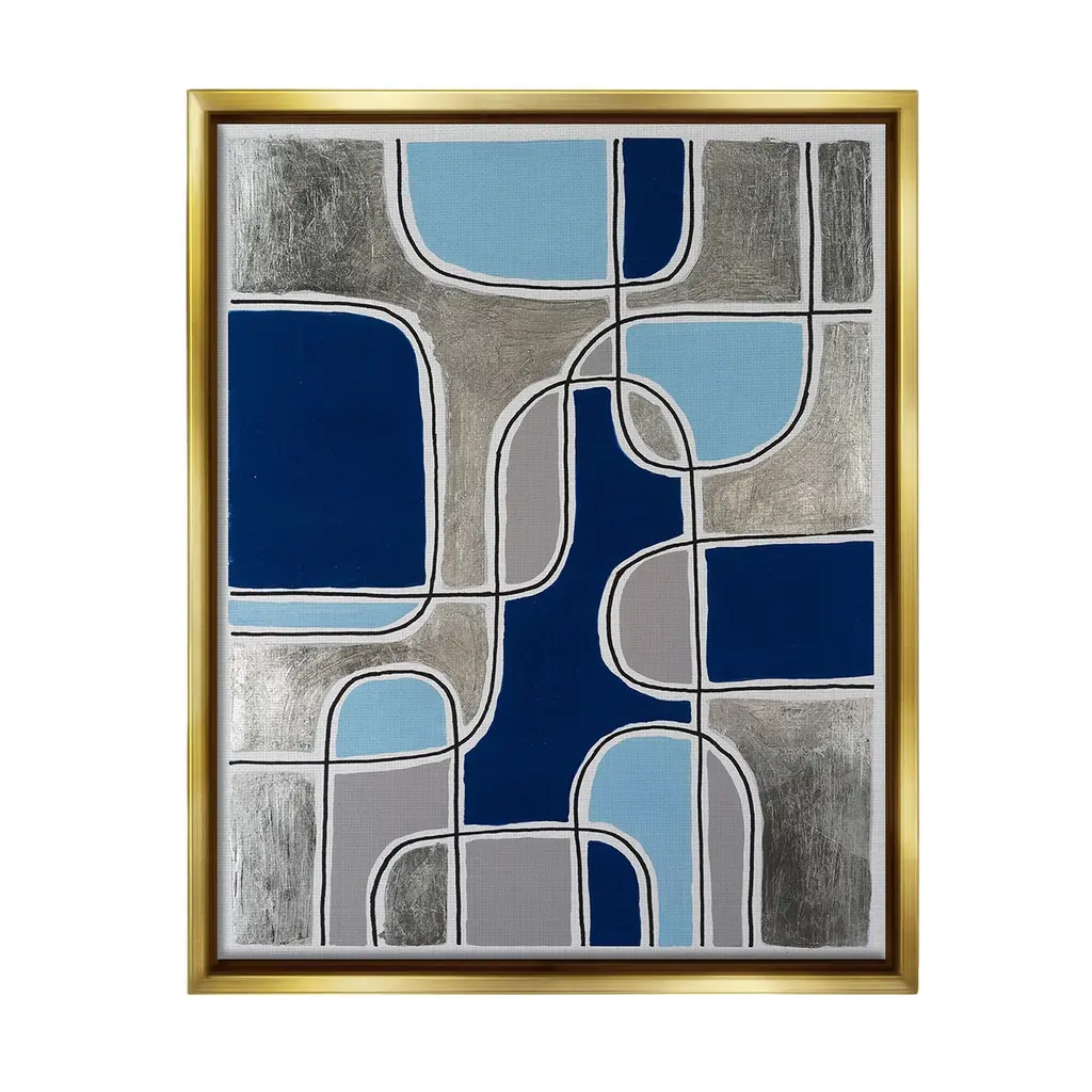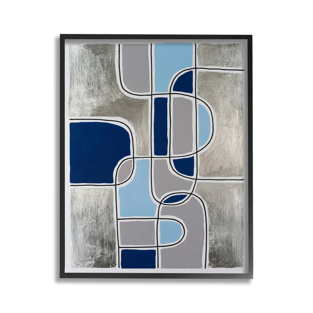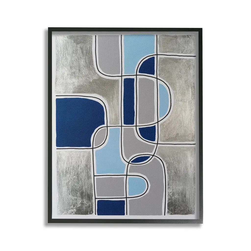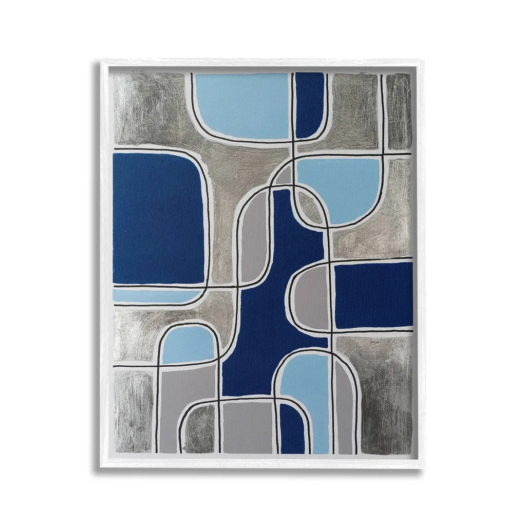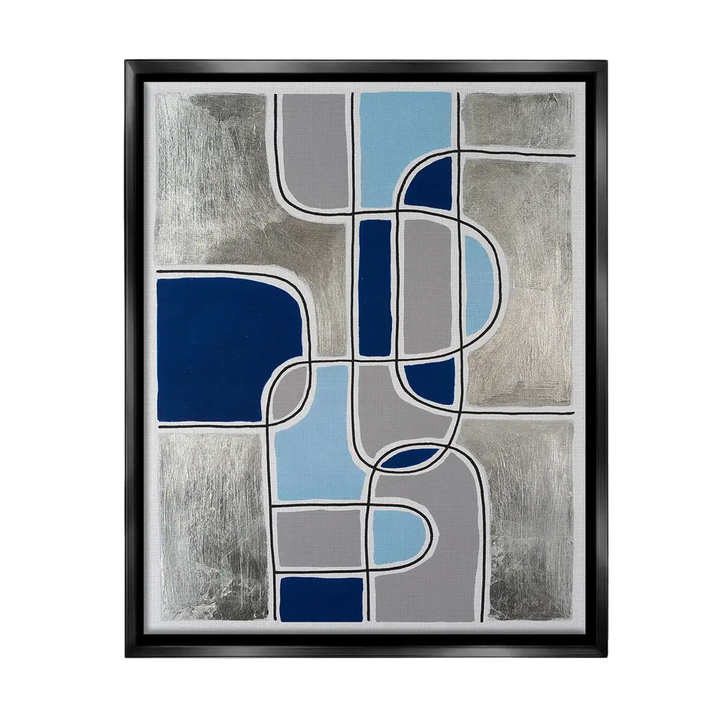 Stupell Blue Asymmetrical Pattern Framed Floater Canvas Wall Art Design By Michael Willett - 25 X 31 - Black