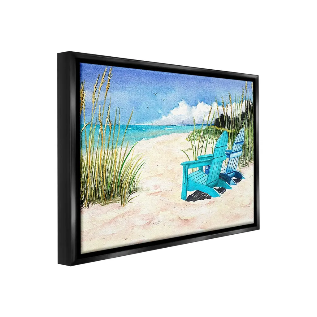 Elevate your home or office to the next level with Stupell Framed Floating Canvas Wall Art. Our premium hand-stretched canvas is mounted securely into a sturdy lightweight frame. The museum-style gap between the wrapped canvas and the box frame gives the illusion of floating artwork. Stupell Wall Art is made in the USA.Features: Dimensions: 21 x 1.7 x 17 Frame, 20 x 1.5 x 16 Canvas ArtFloating Frame Canvas Products are available in sizes 21"x17" and 31"x25". All Floating Frame Canvas Products have a 1.7" Depth.Wall Art is Ready to Hang with Hardware Free Hanging. No Installation required. For Easy Set Up Lean or Layer Artwork on Shelf or Against Wall. Artwork is Permently Fixed into the Frame.Our elevated 1.7" Thick Floating Frame is the perfect complement to our canvas style Wall Art. We use only the highest quality inks in house with industry leading printing solutions. Canvas is hand stretched over a durable wood foundation and then mounted securly into a Modern Box Frame. Made in the USA.Artwork Relates To: Sky, Horizon, Sea, Water, Beach, Coast, Shoreline, Scenery, Sea Waves, Summer, Beach ChairDesign by Christine Reichow
