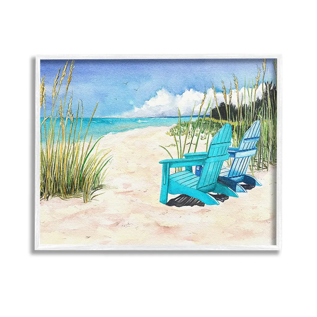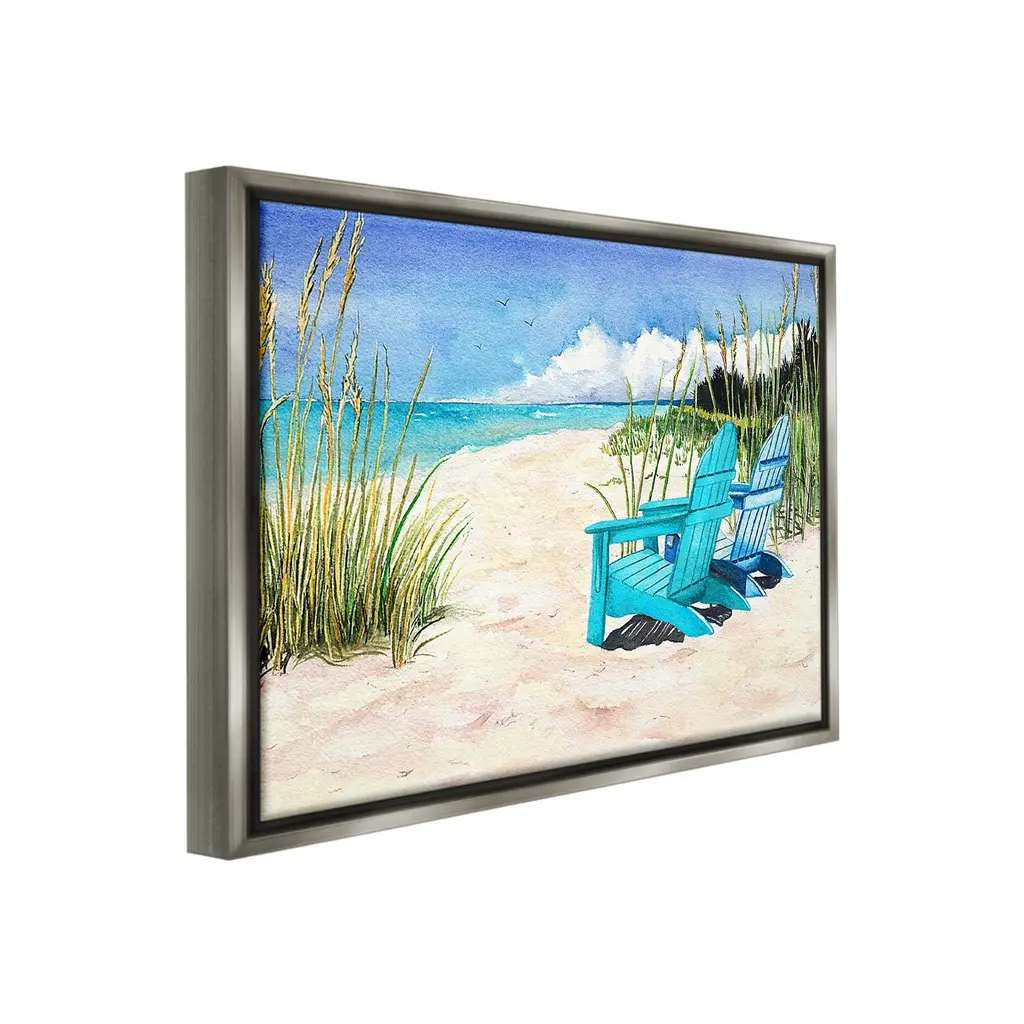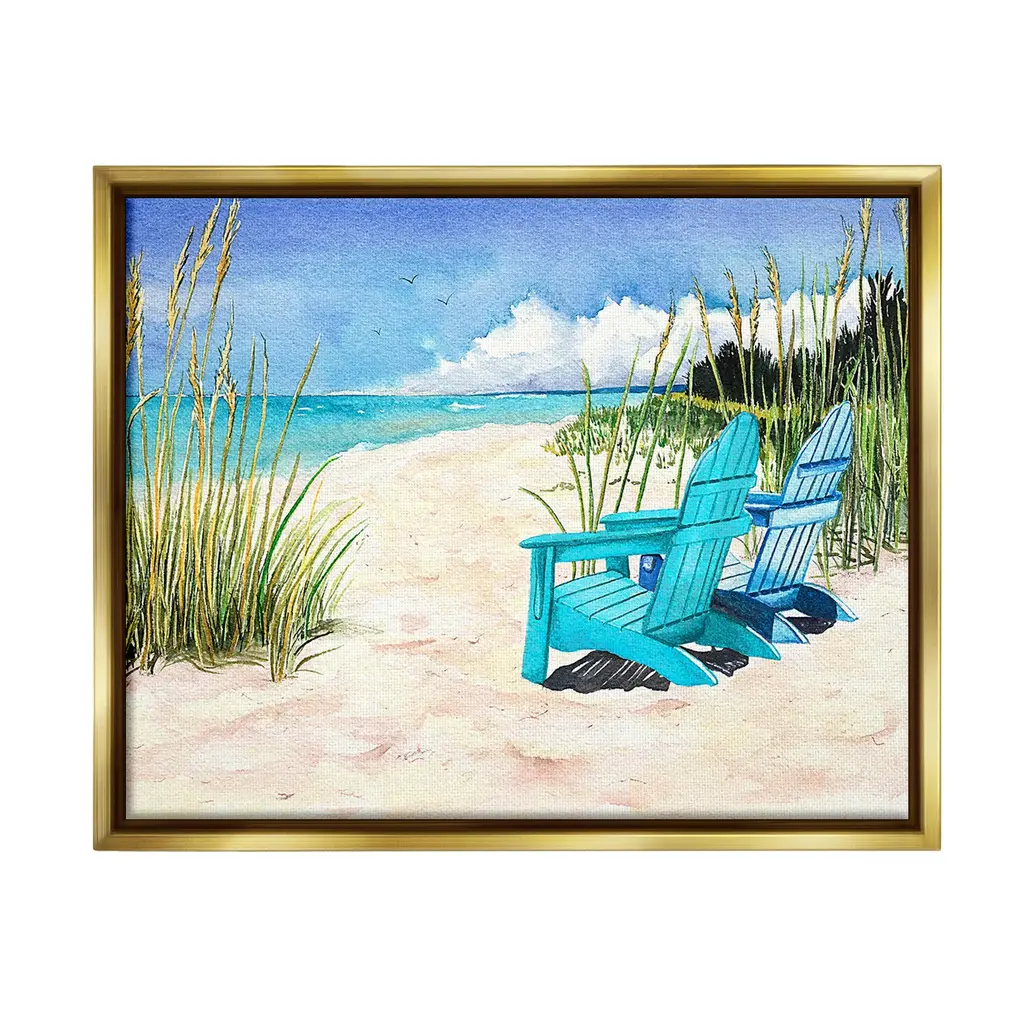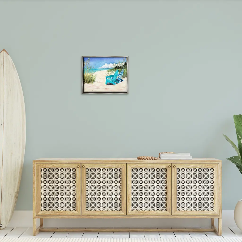 Elevate your home or office to the next level with Stupell Framed Floating Canvas Wall Art. Our premium hand-stretched canvas is mounted securely into a sturdy lightweight frame. The museum-style gap between the wrapped canvas and the box frame gives the illusion of floating artwork. Stupell Wall Art is made in the USA.Features: Dimensions: 21 x 1.7 x 17 Frame, 20 x 1.5 x 16 Canvas ArtFloating Frame Canvas Products are available in sizes 21"x17" and 31"x25". All Floating Frame Canvas Products have a 1.7" Depth.Wall Art is Ready to Hang with Hardware Free Hanging. No Installation required. For Easy Set Up Lean or Layer Artwork on Shelf or Against Wall. Artwork is Permently Fixed into the Frame.Our elevated 1.7" Thick Floating Frame is the perfect complement to our canvas style Wall Art. We use only the highest quality inks in house with industry leading printing solutions. Canvas is hand stretched over a durable wood foundation and then mounted securly into a Modern Box Frame. Made in the USA.Artwork Relates To: Sky, Horizon, Sea, Water, Beach, Coast, Shoreline, Scenery, Sea Waves, Summer, Beach ChairDesign by Christine Reichow
