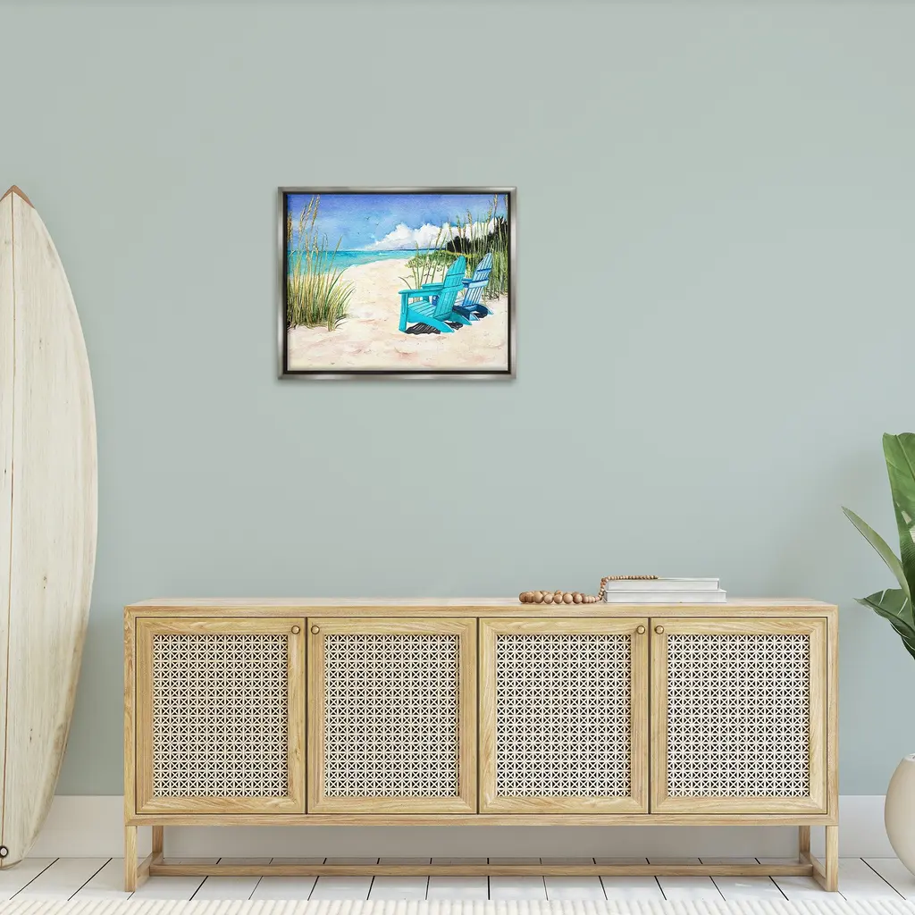 Stupell Blue Beach Chairs Scene Framed Floater Canvas Wall Art Design By Christine Reichow - 31 X 25 - Grey