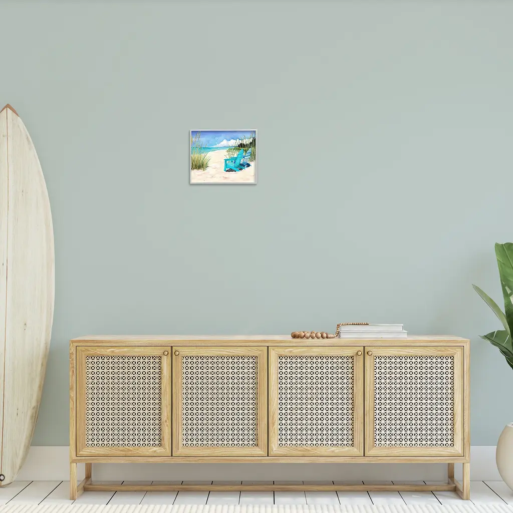 Add dimension to any room with our textured Framed Giclee Artwork. Our framed artwork is securely mounted into a 1.5-inch thick wood grain frame and ready to hang. Frames are available in three alluring styles: black, gray farmhouse and white. In addition, you should check out our oversized options if you want a statement piece. Stupell Wall Art is made in the USA.Features: Dimensions: 14 x 1.5 x 11 FramedFramed Giclee Products are available in the sizes 14"x11", 20"x16" or 30"x24". All Framed Giclee Products have a 1.5" Depth. Wall Art is Ready to Hang with Hardware Free Hanging. No installation required. For Easy Set Up Lean or Layer Artwork on Shelf or Against Wall.Our giclée prints are carefully mounted on a durable MDF backing, and then perfectly finished in a 1.5 inch thick woodgrain frame. Mounted frame colors include black, gray farmhouse and white. Made In USA.Artwork Relates To: Sky, Horizon, Sea, Water, Beach, Coast, Shoreline, Scenery, Sea Waves, Summer, Beach ChairDesign by Christine Reichow