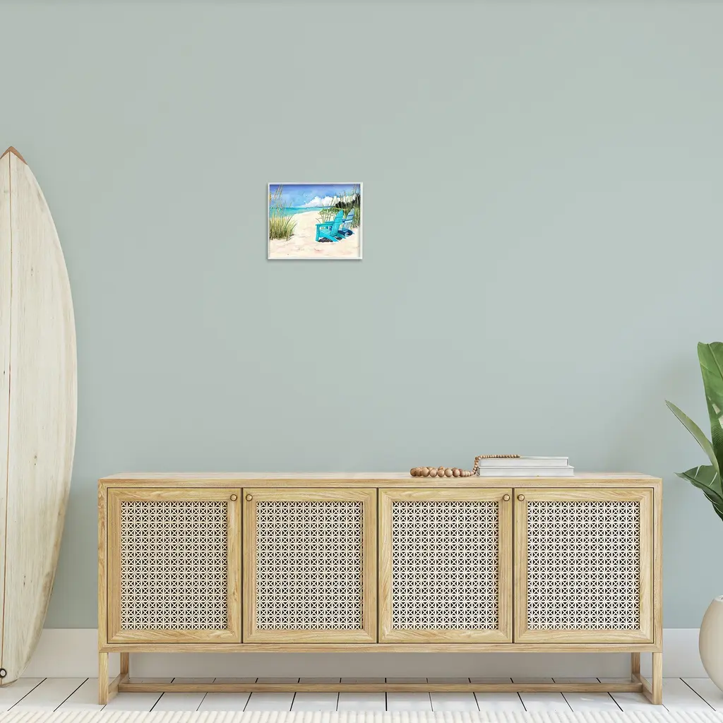 Add dimension to any room with our textured Framed Giclee Artwork. Our framed artwork is securely mounted into a 1.5-inch thick wood grain frame and ready to hang. Frames are available in three alluring styles: black, gray farmhouse and white. In addition, you should check out our oversized options if you want a statement piece. Stupell Wall Art is made in the USA.Features: Dimensions: 14 x 1.5 x 11 FramedFramed Giclee Products are available in the sizes 14"x11", 20"x16" or 30"x24". All Framed Giclee Products have a 1.5" Depth. Wall Art is Ready to Hang with Hardware Free Hanging. No installation required. For Easy Set Up Lean or Layer Artwork on Shelf or Against Wall.Our giclée prints are carefully mounted on a durable MDF backing, and then perfectly finished in a 1.5 inch thick woodgrain frame. Mounted frame colors include black, gray farmhouse and white. Made In USA.Artwork Relates To: Sky, Horizon, Sea, Water, Beach, Coast, Shoreline, Scenery, Sea Waves, Summer, Beach ChairDesign by Christine Reichow