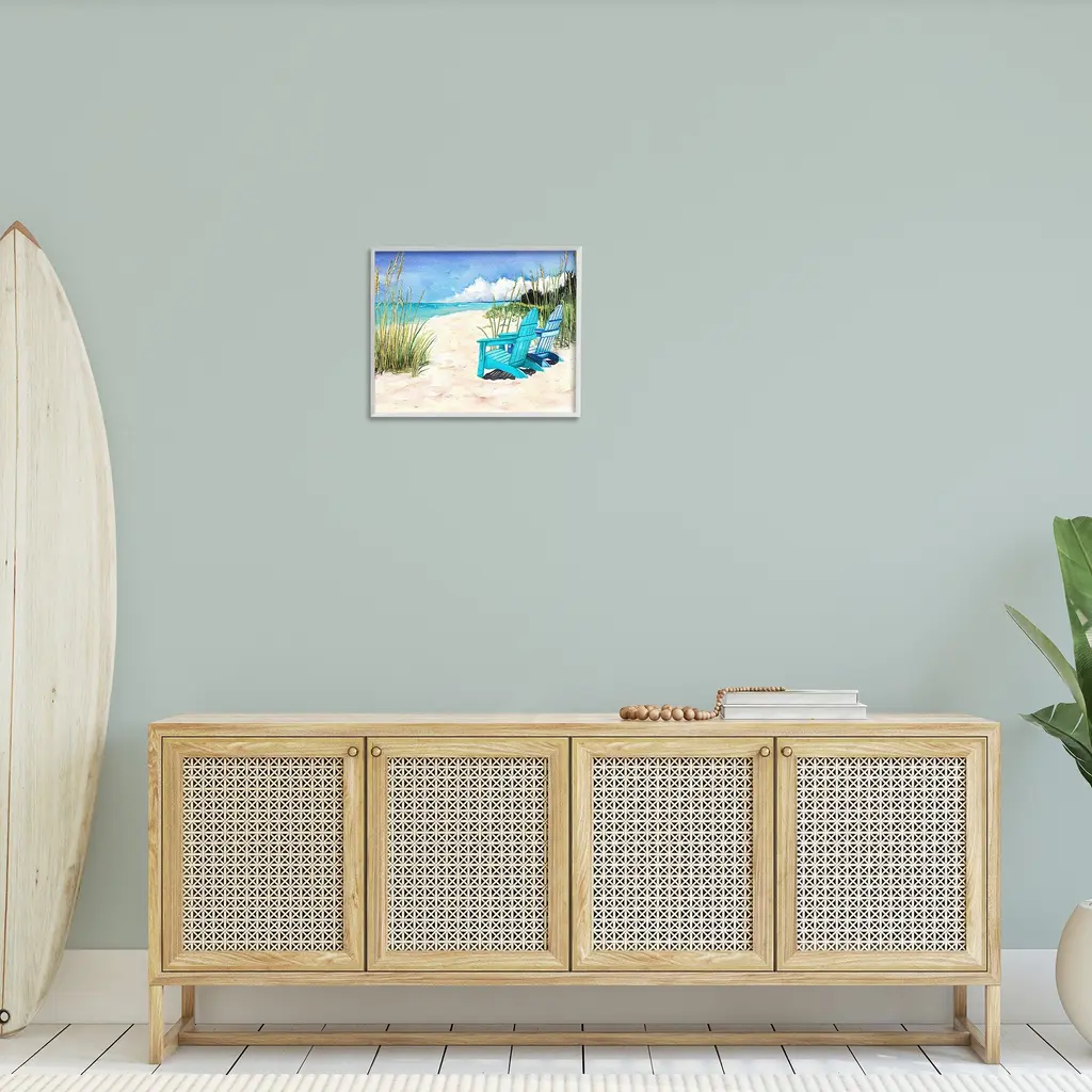 Add dimension to any room with our textured Framed Giclee Artwork. Our framed artwork is securely mounted into a 1.5-inch thick wood grain frame and ready to hang. Frames are available in three alluring styles: black, gray farmhouse and white. In addition, you should check out our oversized options if you want a statement piece. Stupell Wall Art is made in the USA.Features: Dimensions: 14 x 1.5 x 11 FramedFramed Giclee Products are available in the sizes 14"x11", 20"x16" or 30"x24". All Framed Giclee Products have a 1.5" Depth. Wall Art is Ready to Hang with Hardware Free Hanging. No installation required. For Easy Set Up Lean or Layer Artwork on Shelf or Against Wall.Our giclée prints are carefully mounted on a durable MDF backing, and then perfectly finished in a 1.5 inch thick woodgrain frame. Mounted frame colors include black, gray farmhouse and white. Made In USA.Artwork Relates To: Sky, Horizon, Sea, Water, Beach, Coast, Shoreline, Scenery, Sea Waves, Summer, Beach ChairDesign by Christine Reichow