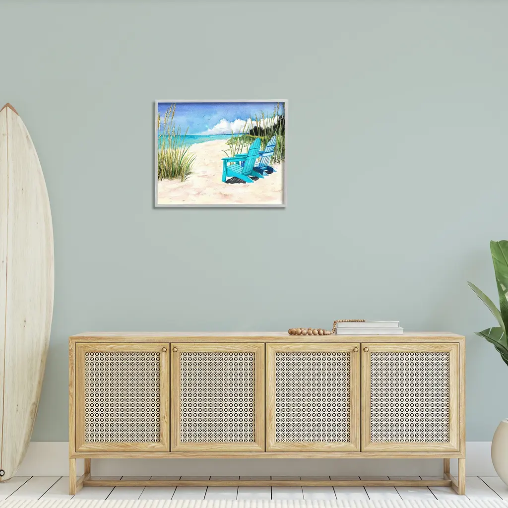 Stupell Blue Beach Chairs Scene Framed Giclee Art Design By Christine Reichow - 30 X 24 - Grey