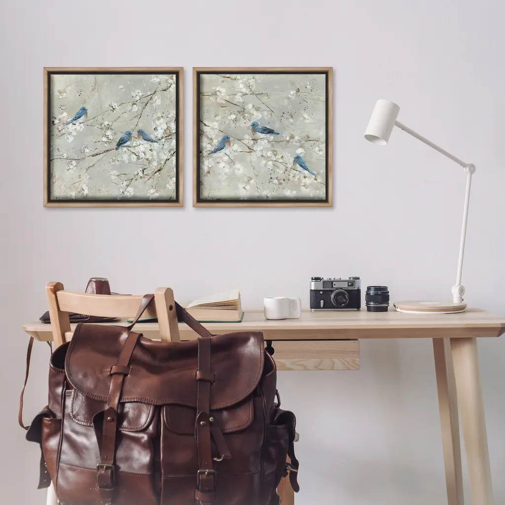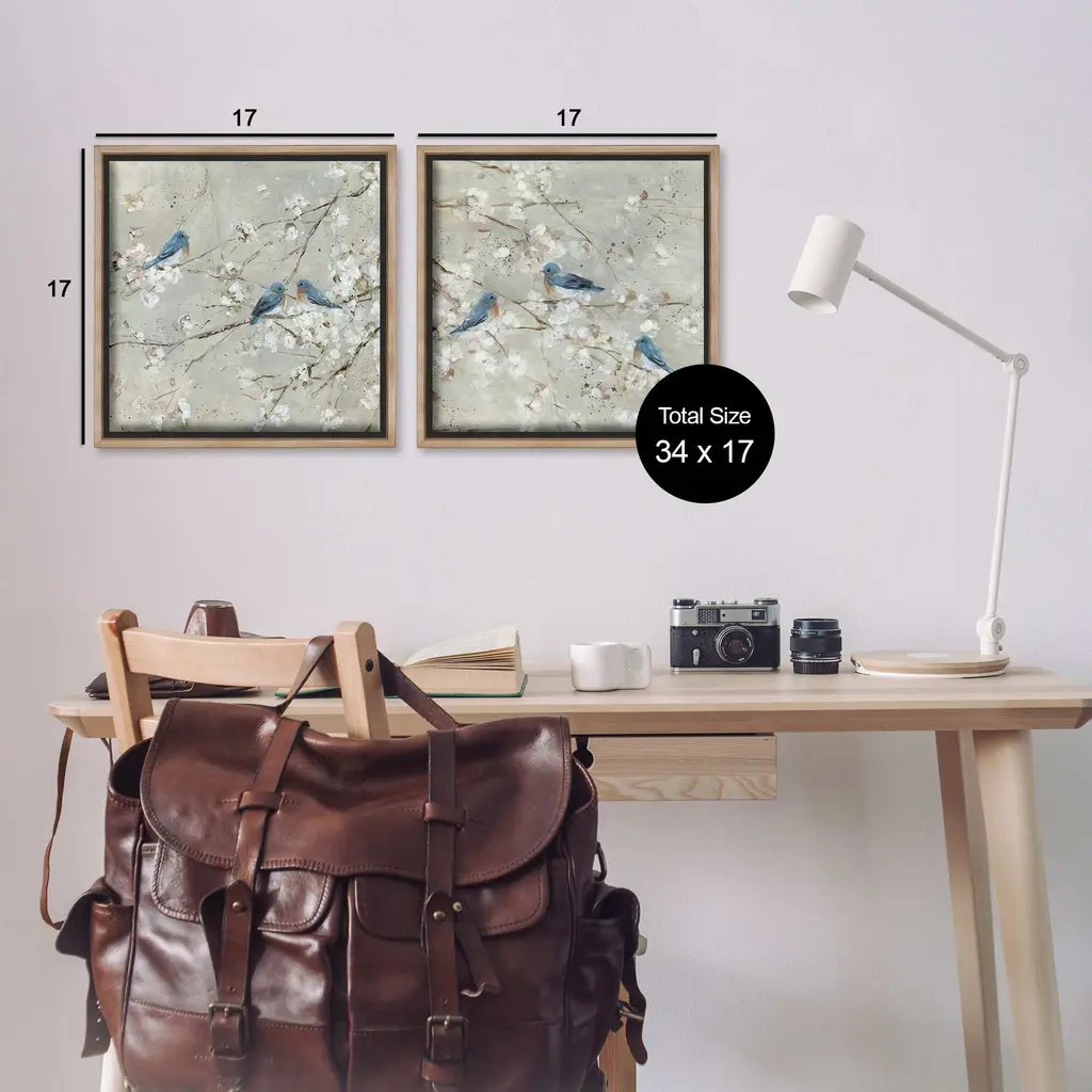 Elevate your home or office to the next level with Stupell Framed Floating Canvas Wall Art. Our premium hand-stretched canvas is mounted securely into a sturdy lightweight frame. The museum-style gap between the wrapped canvas and the box frame gives the illusion of floating artwork. Stupell Wall Art is made in the USA.Features: Dimensions: 2 Piece Set, Each Frame is 18 x 1.7 x 18Two Piece Floating Frame Canvas Products are available as 18"x18" or 25"x25" Panels. All Floating Frame Canvas Products have a 1.7" Depth.Wall Art is Ready to Hang with Hardware Free Hanging. No Installation required. For Easy Set Up Lean or Layer Artwork on Shelf or Against Wall. Artwork is Permently Fixed into the Frame.Our elevated 1.7" Thick Floating Frame is the perfect complement to our canvas style Wall Art. We use only the highest quality inks in house with industry leading printing solutions. Canvas is hand stretched over a durable wood foundation and then mounted securly into a Modern Box Frame. Made in the USA.Artwork Relates To: Birds, Trees, Country, Farmhouse, Botanicals, Blossoms, FlowersDesign by Sally Swatland