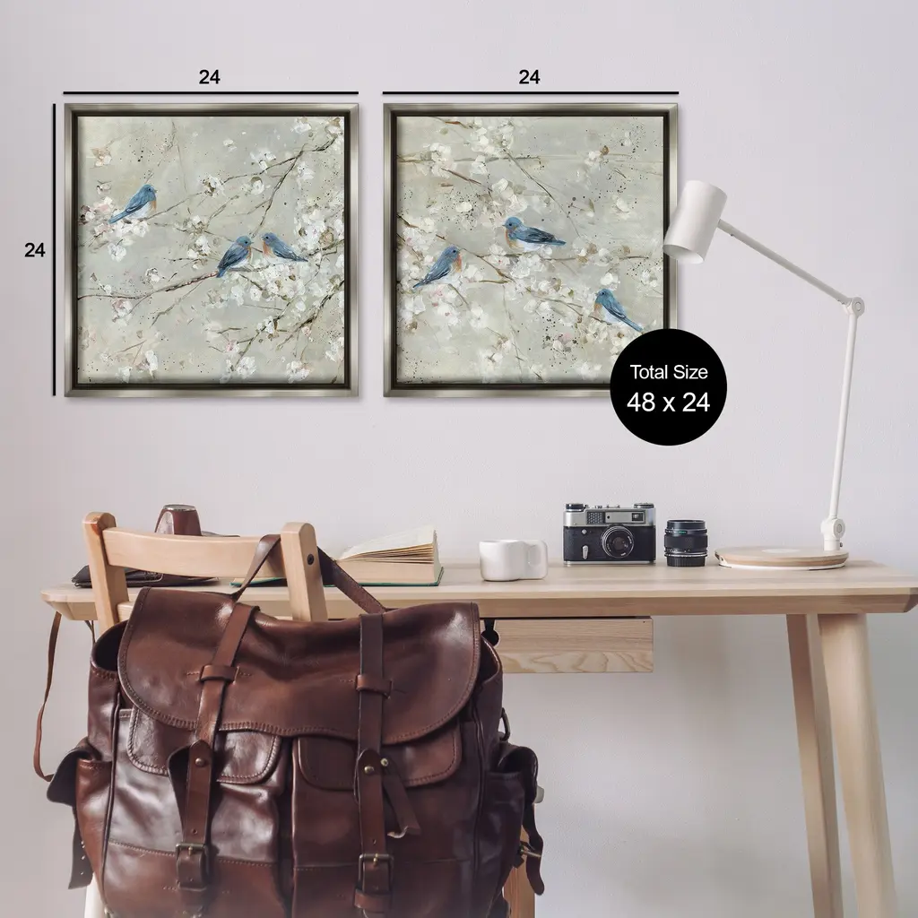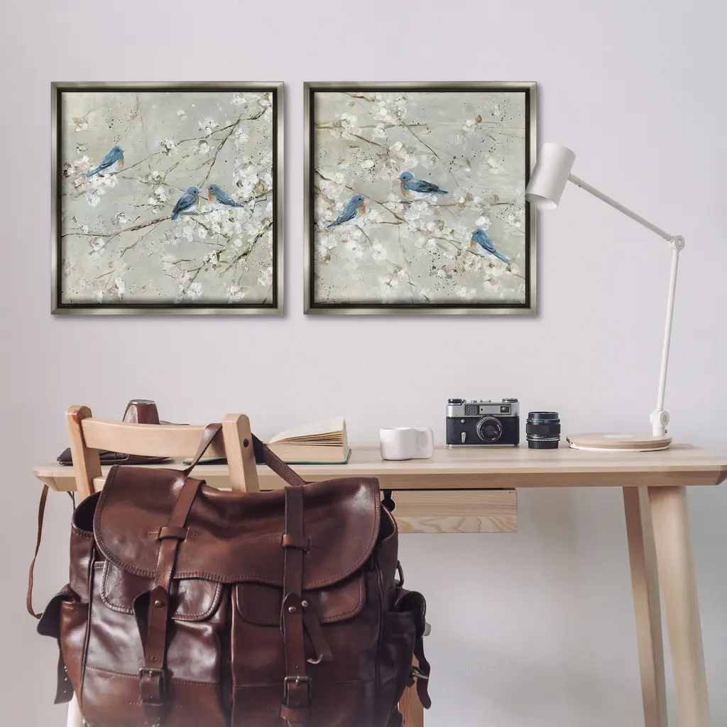 Stupell Blue Birds Perched Tree Blossoms Framed Floater Canvas Wall Art Design By Sally Swatland (Set Of 2) - 25 X 25 - Grey