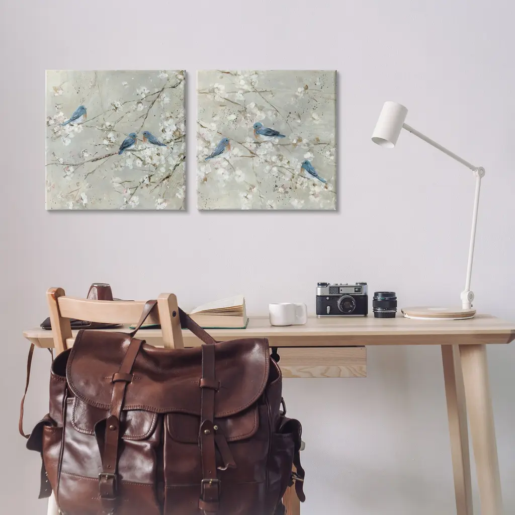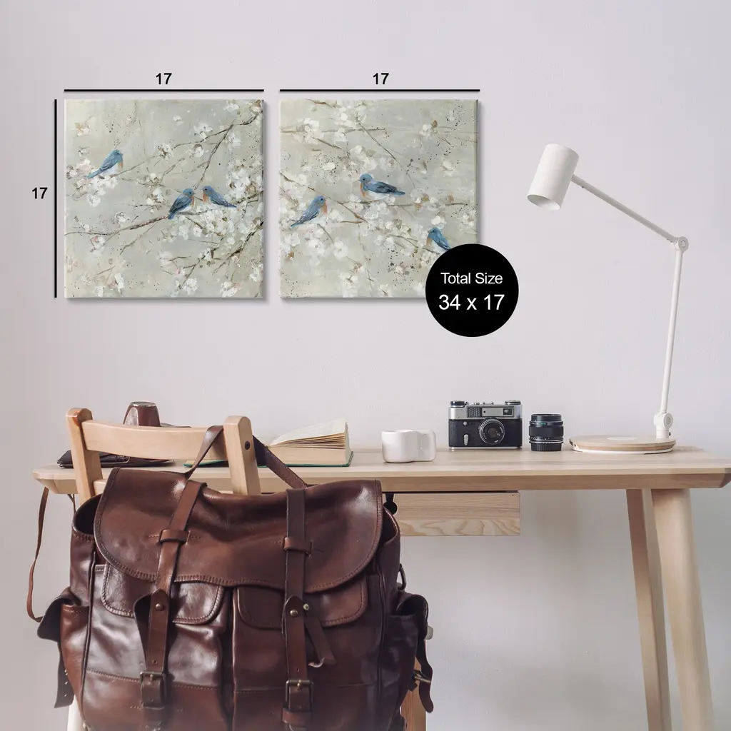 Stupell Blue Birds Perched Tree Blossoms Spring Scene 2Pc Multi Piece Canvas Wall Art Set - Silver - 17 X 17