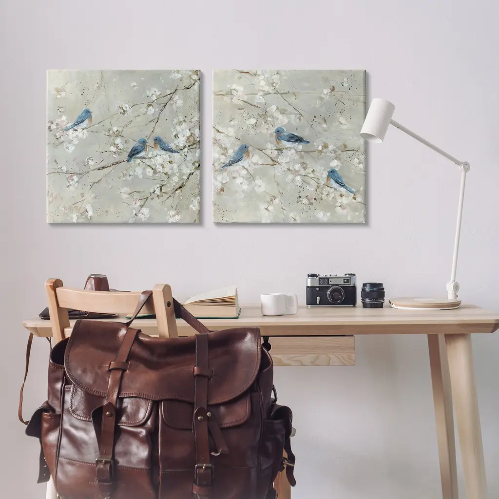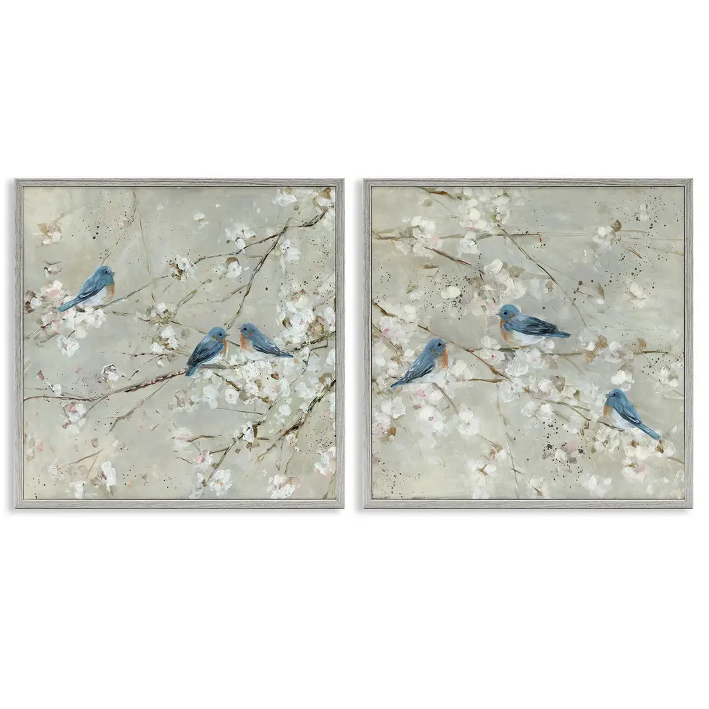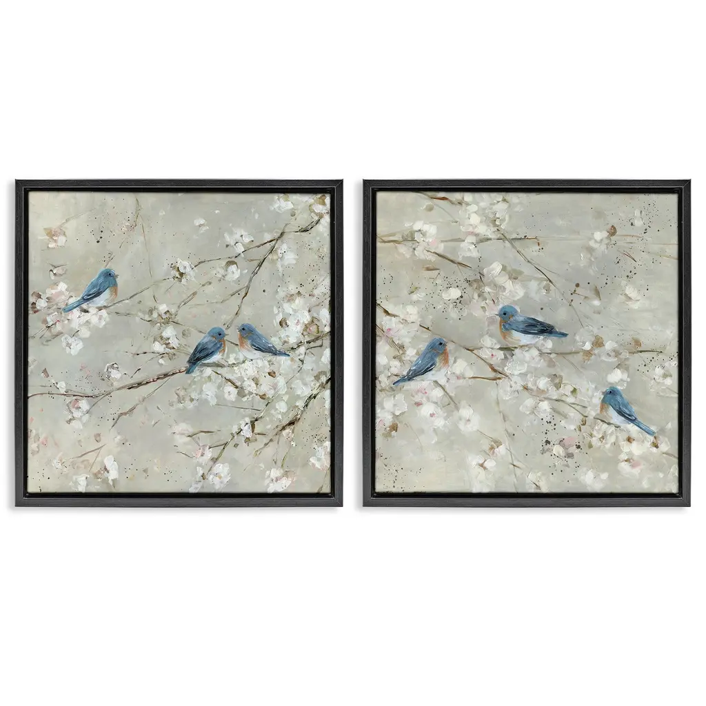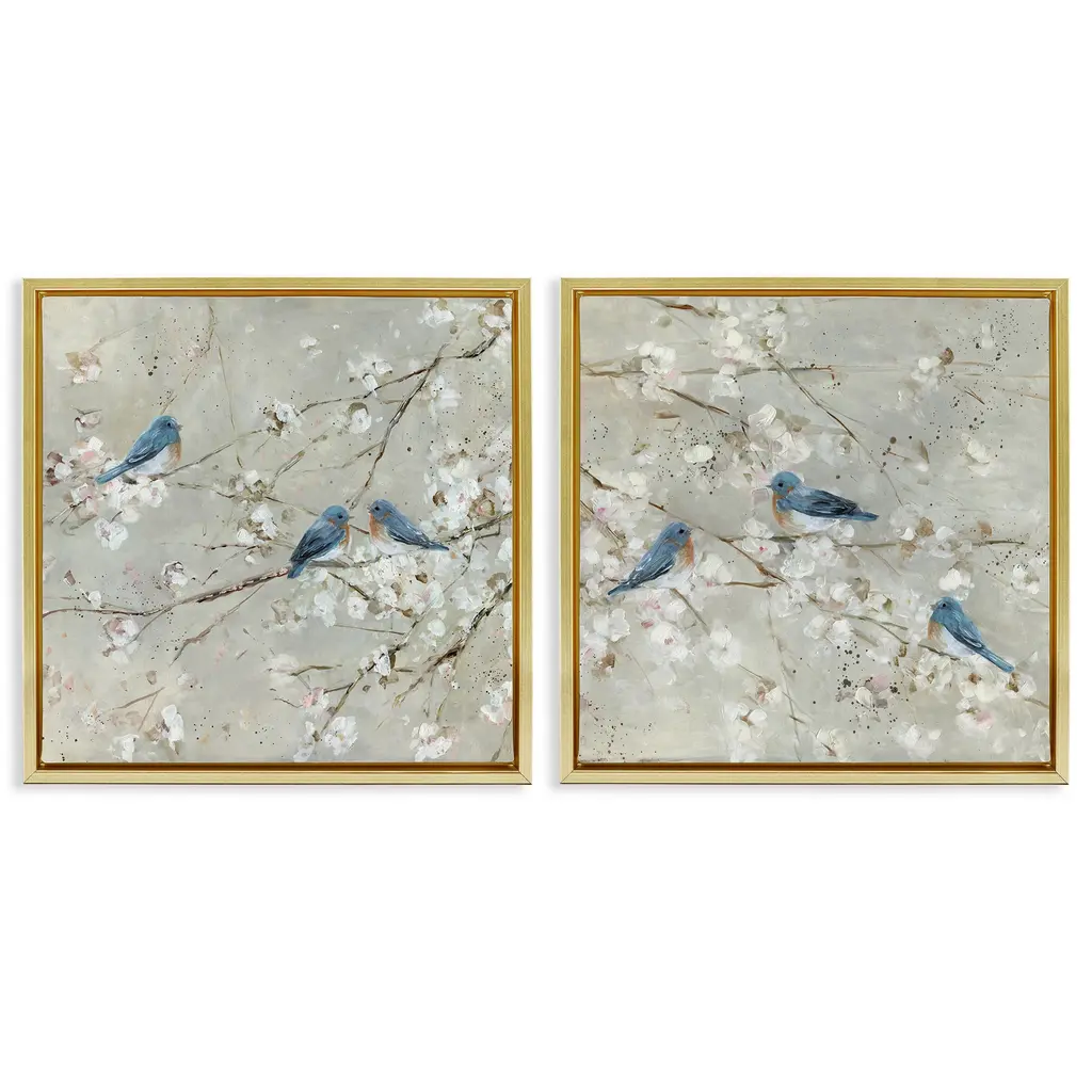 Stupell Blue Birds Perched Tree Blossoms Spring Scene 2Pc Multi Piece Canvas Wall Art Set - Silver - 24 X 24