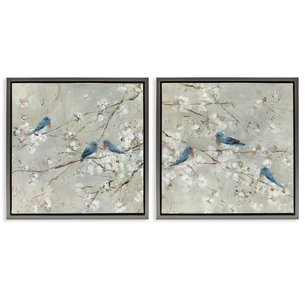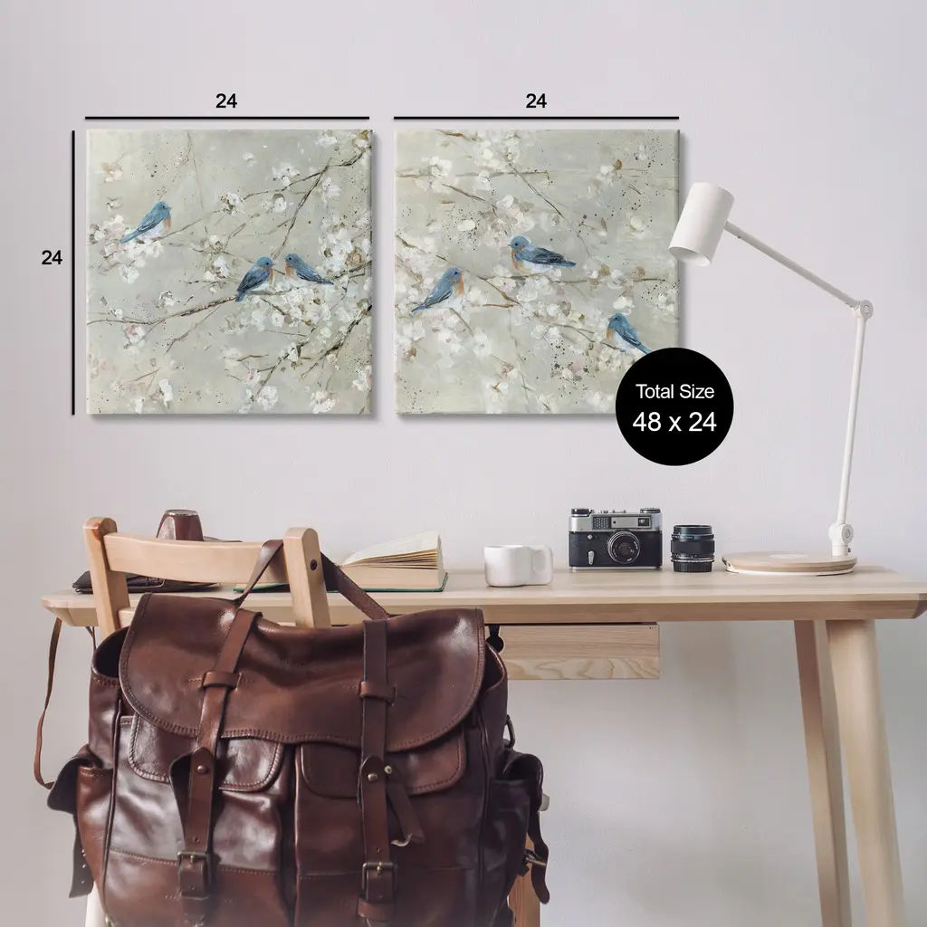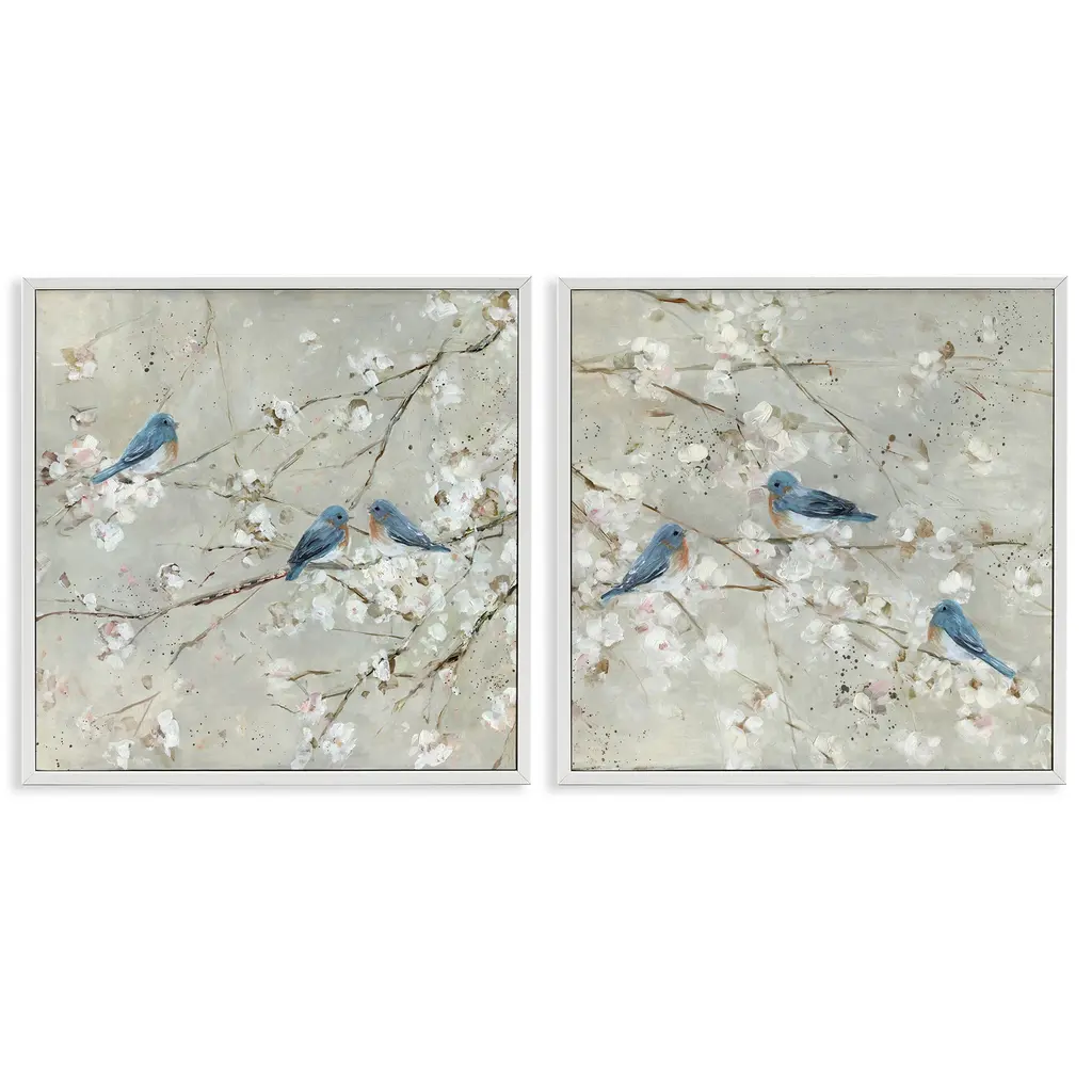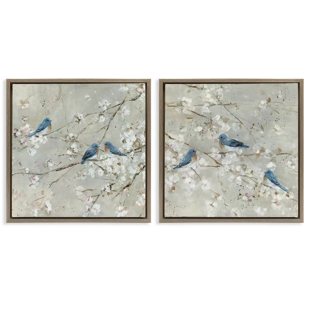 Stupell Blue Birds Perched Tree Blossoms Spring Scene 2Pc Multi Piece Canvas Wall Art Set - Silver - 24 X 24