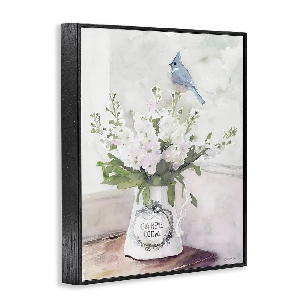 Stupell Blue Cardinal On Spring Bouquet Carpe Diem Watercolor Framed Wall Art - White - 24 X 30 - Black