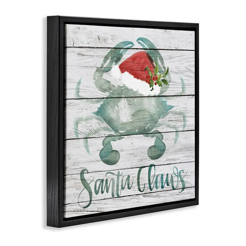 Elevate your home or office to the next level with Stupell Framed Floating Canvas Wall Art. Our premium hand-stretched canvas is mounted securely into a sturdy lightweight frame. The museum-style gap between the wrapped canvas and the box frame gives the illusion of floating artwork. Stupell Wall Art is made in the USA.Features: Dimensions: 18 x 1.7 x 18 Frame, 17 x 1.5 x 17 Canvas ArtFloating Frame Canvas Products are available in sizes 18"x18" and 25"x25". All Floating Frame Canvas Products have a 1.7" Depth.Wall Art is Ready to Hang with Hardware Free Hanging. No Installation required. For Easy Set Up Lean or Layer Artwork on Shelf or Against Wall. Artwork is Permently Fixed into the Frame.Our elevated 1.7" Thick Floating Frame is the perfect complement to our canvas style Wall Art. We use only the highest quality inks in house with industry leading printing solutions. Canvas is hand stretched over a durable wood foundation and then mounted securly into a Modern Box Frame. Made in the USA.Artwork Relates To: Holiday, Christmas, Nautical, Coastal, Phrase, Rustic, CrabDesign by Jennifer Paxton Parker