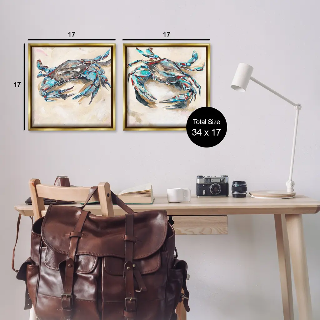 Stupell Blue Crabs On Sand Framed Floater Canvas Wall Art Design By Melissa Wang (Set Of 2) - 18 X 18 - Gold