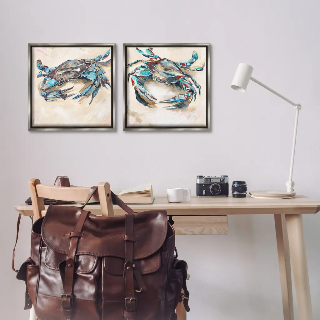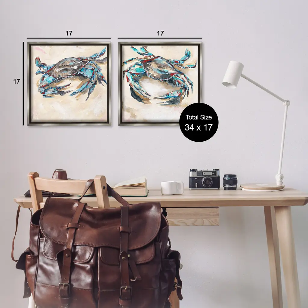 Elevate your home or office to the next level with Stupell Framed Floating Canvas Wall Art. Our premium hand-stretched canvas is mounted securely into a sturdy lightweight frame. The museum-style gap between the wrapped canvas and the box frame gives the illusion of floating artwork. Stupell Wall Art is made in the USA.Features: Dimensions: 2 Piece Set, Each Frame is 18 x 1.7 x 18Two Piece Floating Frame Canvas Products are available as 18"x18" or 25"x25" Panels. All Floating Frame Canvas Products have a 1.7" Depth.Wall Art is Ready to Hang with Hardware Free Hanging. No Installation required. For Easy Set Up Lean or Layer Artwork on Shelf or Against Wall. Artwork is Permently Fixed into the Frame.Our elevated 1.7" Thick Floating Frame is the perfect complement to our canvas style Wall Art. We use only the highest quality inks in house with industry leading printing solutions. Canvas is hand stretched over a durable wood foundation and then mounted securly into a Modern Box Frame. Made in the USA.Artwork Relates To: Food, Seafood, Animal, Crab, Invertebrate, Sea Life, King Crab, Beach, Nautical, MaritimeDesign by Melissa Wang