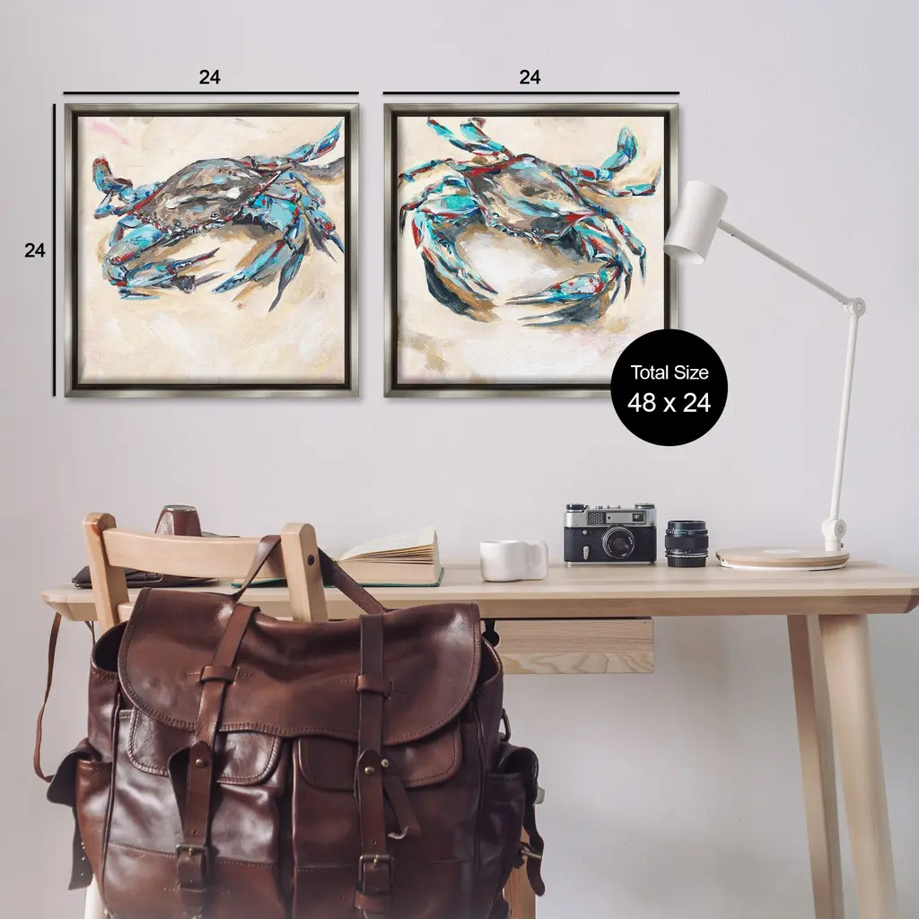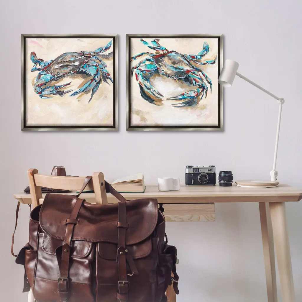Elevate your home or office to the next level with Stupell Framed Floating Canvas Wall Art. Our premium hand-stretched canvas is mounted securely into a sturdy lightweight frame. The museum-style gap between the wrapped canvas and the box frame gives the illusion of floating artwork. Stupell Wall Art is made in the USA.Features: Dimensions: 2 Piece Set, Each Frame is 18 x 1.7 x 18Two Piece Floating Frame Canvas Products are available as 18"x18" or 25"x25" Panels. All Floating Frame Canvas Products have a 1.7" Depth.Wall Art is Ready to Hang with Hardware Free Hanging. No Installation required. For Easy Set Up Lean or Layer Artwork on Shelf or Against Wall. Artwork is Permently Fixed into the Frame.Our elevated 1.7" Thick Floating Frame is the perfect complement to our canvas style Wall Art. We use only the highest quality inks in house with industry leading printing solutions. Canvas is hand stretched over a durable wood foundation and then mounted securly into a Modern Box Frame. Made in the USA.Artwork Relates To: Food, Seafood, Animal, Crab, Invertebrate, Sea Life, King Crab, Beach, Nautical, MaritimeDesign by Melissa Wang