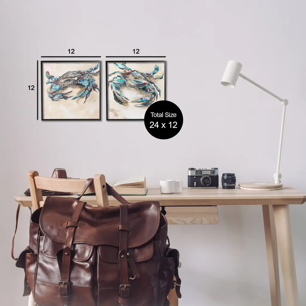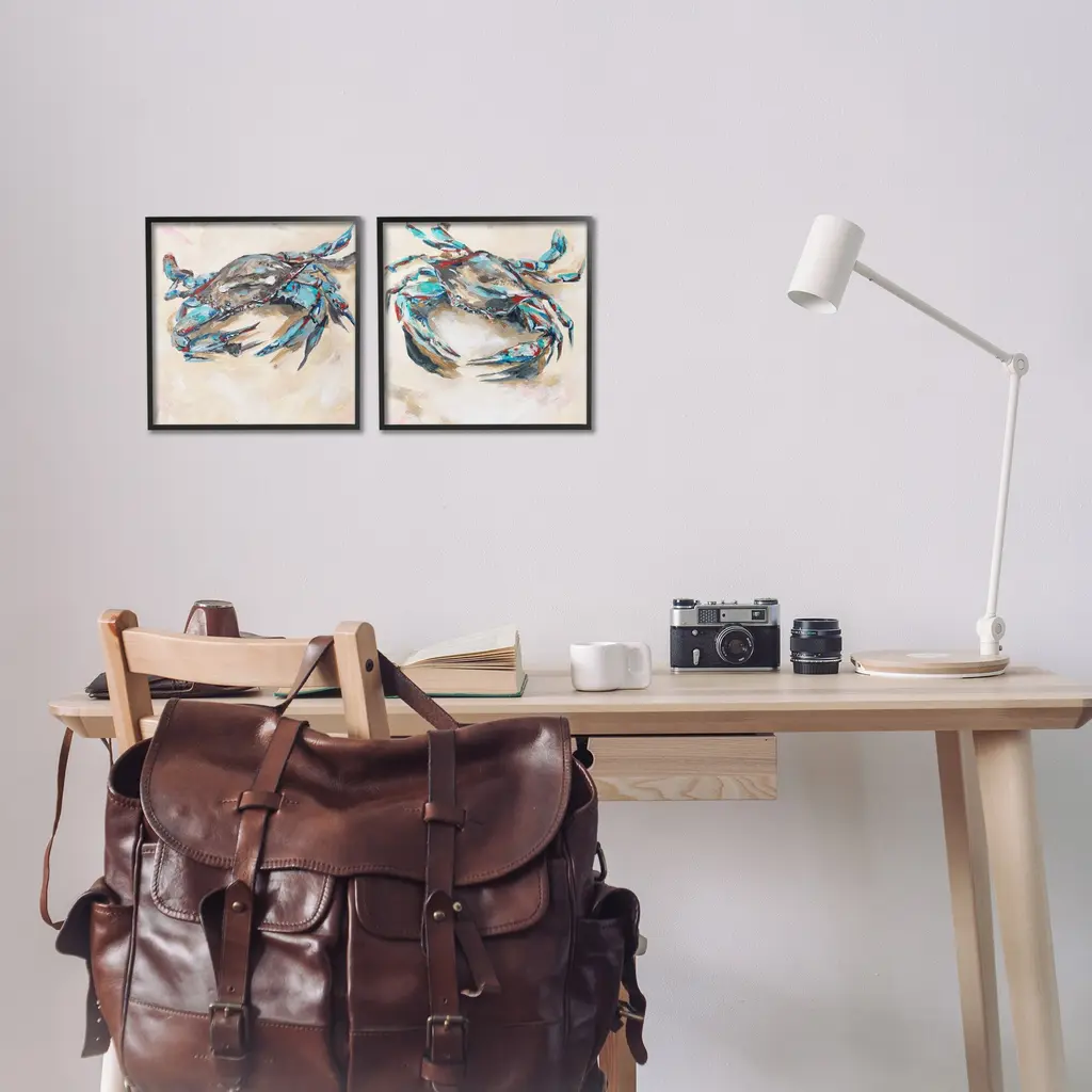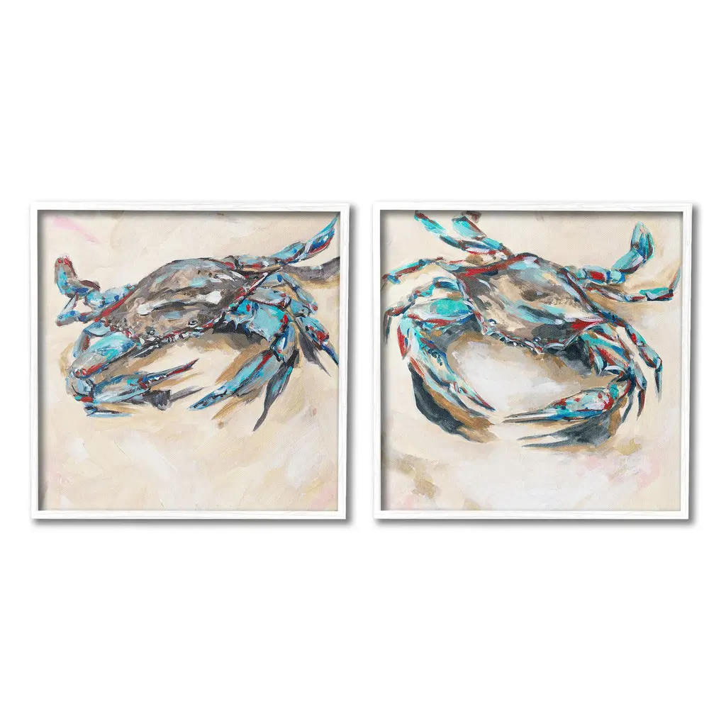 Fill any space in your home or office with our Framed Wall Art Sets. Our framed artwork is securely mounted into a 1.5-inch thick wood grain frame and ready to hang. Frames are available in three alluring styles: black, gray farmhouse and white. Stupell Wall Art is made in the USA.Features: Dimensions: 2 Piece Set, Each Panel is 12 x 1.5 x 12 FramedTwo Piece Framed Giclee Sets are available as 12"x12", 17"x17" or 24"x24" Panels. All Framed giclee Products have a 1.5" Depth.Wall Art is Ready to Hang with Hardware Free Hanging. No installation required. For Easy Set Up Lean or Layer Artwork on Shelf or Against Wall.Curated Wall Art Sets make it easy for you complete the theme for any room. Our giclée prints are carefully mounted on a durable MDF backing, and then perfectly finished in a 1.5 inch thick woodgrain frame. Mounted frame colors include black, gray farmhouse and white. Made In USA.Artwork Relates To: Food, Seafood, Animal, Crab, Invertebrate, Sea Life, King Crab, Beach, Nautical, MaritimeDesign by Melissa Wang