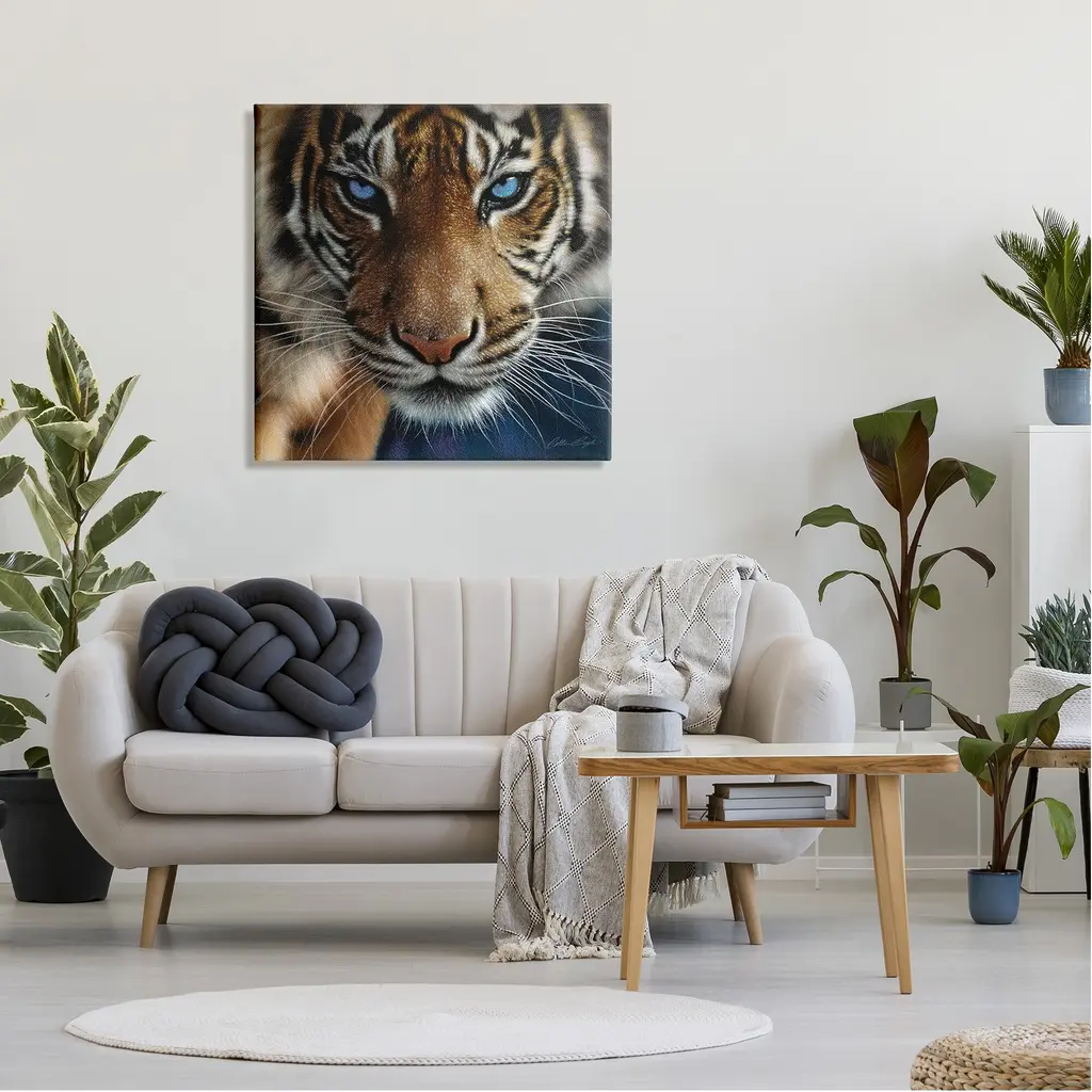 Stupell Blue Eyed Beautiful Fierce Tiger Close Up Detailed Portrait Canvas Wall Art - 17 X 17