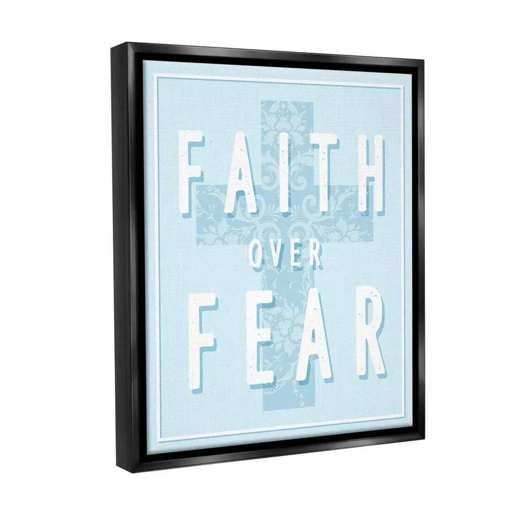 Elevate your home or office to the next level with Stupell Framed Floating Canvas Wall Art. Our premium hand-stretched canvas is mounted securely into a sturdy lightweight frame. The museum-style gap between the wrapped canvas and the box frame gives the illusion of floating artwork. Stupell Wall Art is made in the USA.Features: Dimensions: 17 x 1.7 x 21 Frame, 16 x 1.5 x 20 Canvas ArtFloating Frame Canvas Products are available in sizes 17"x21" and 25"x31". All Floating Frame Canvas Products have a 1.7" Depth.Wall Art is Ready to Hang with Hardware Free Hanging. No Installation required. For Easy Set Up Lean or Layer Artwork on Shelf or Against Wall. Artwork is Permently Fixed into the Frame.Our elevated 1.7" Thick Floating Frame is the perfect complement to our canvas style Wall Art. We use only the highest quality inks in house with industry leading printing solutions. Canvas is hand stretched over a durable wood foundation and then mounted securly into a Modern Box Frame. Made in the USA.Artwork Relates To: Pattern, Floral, Religious, Spiritual, Faith, Proverb, Faith Over FearDesign by Lil' Rue