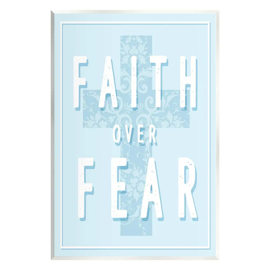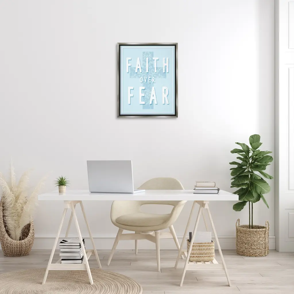 Stupell Blue Faith Over Fear Framed Floater Canvas Wall Art Design By Lil' Rue - 25 X 31 - Grey