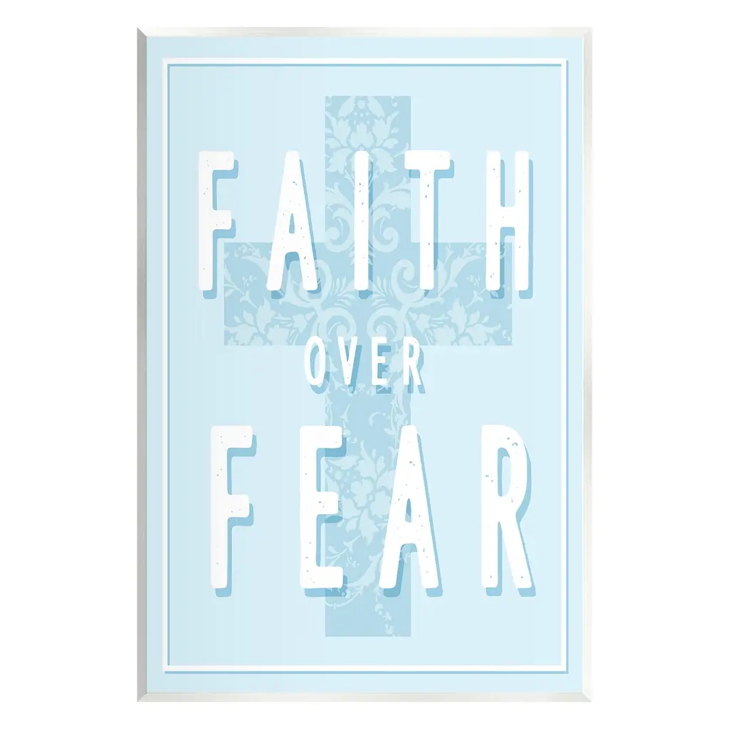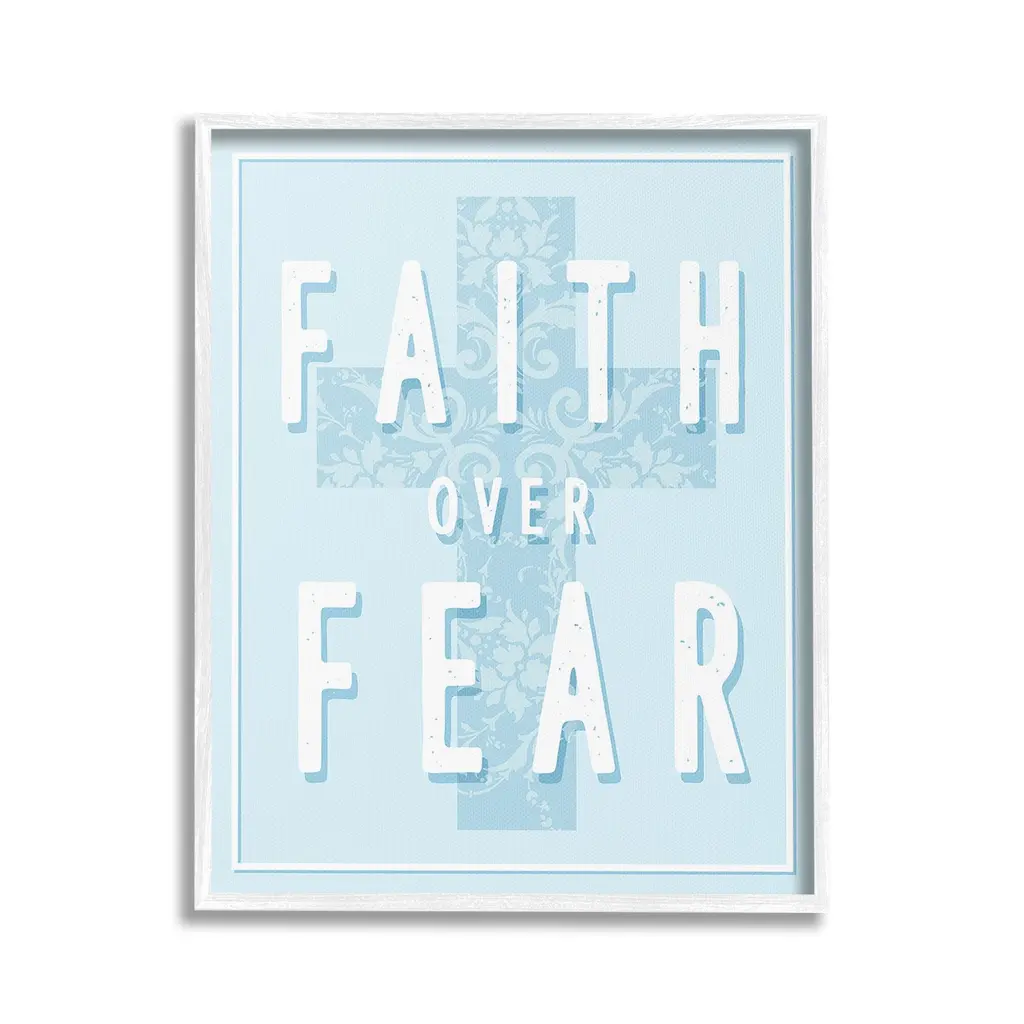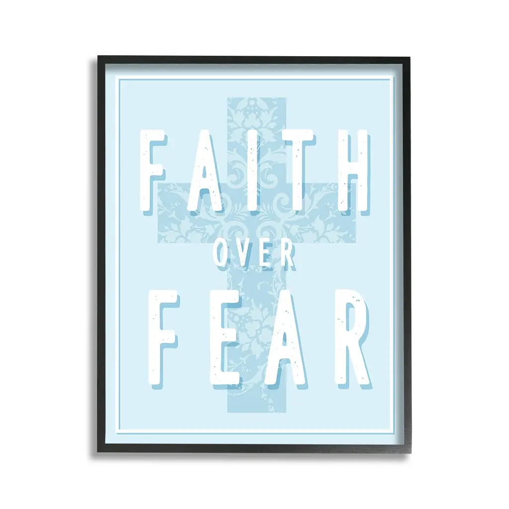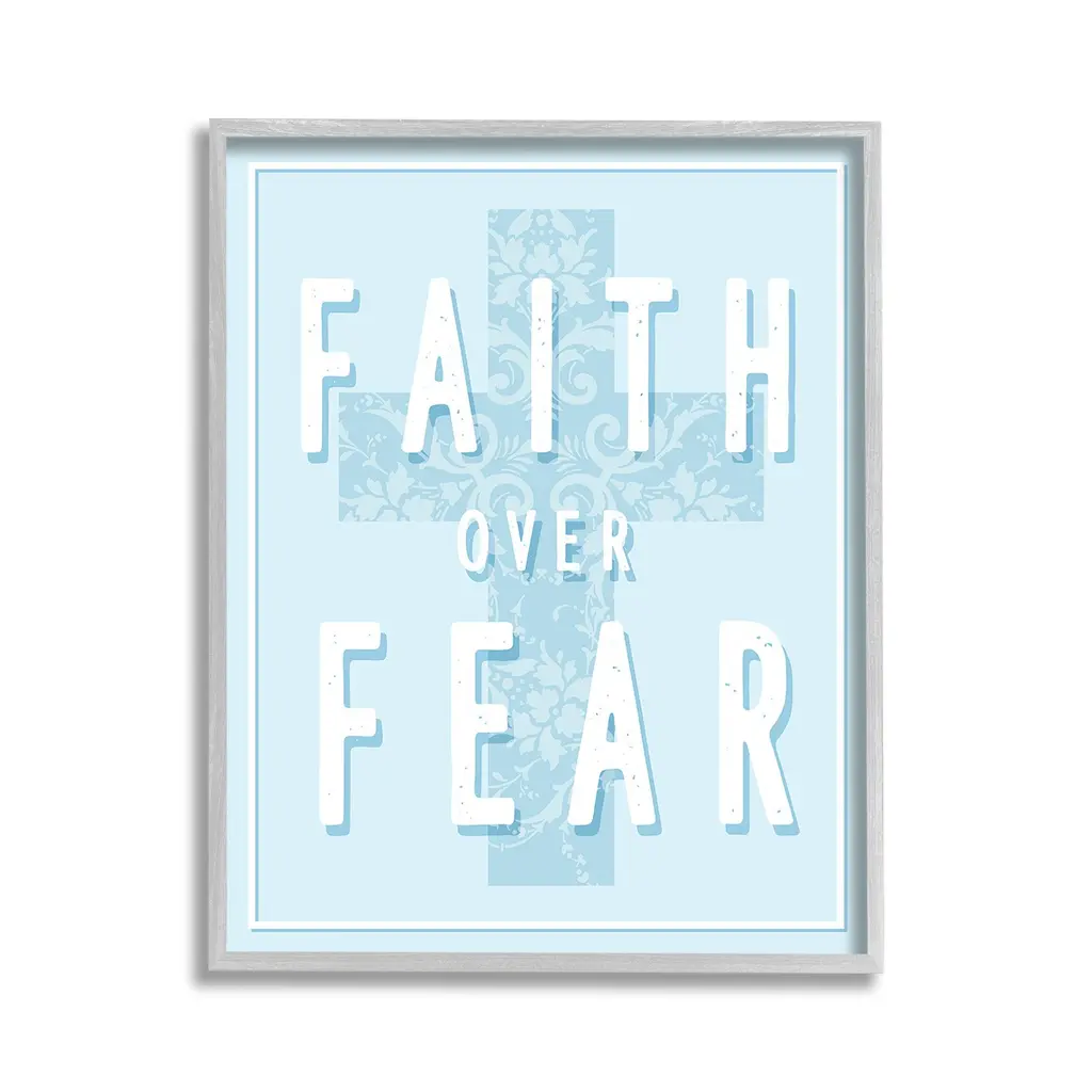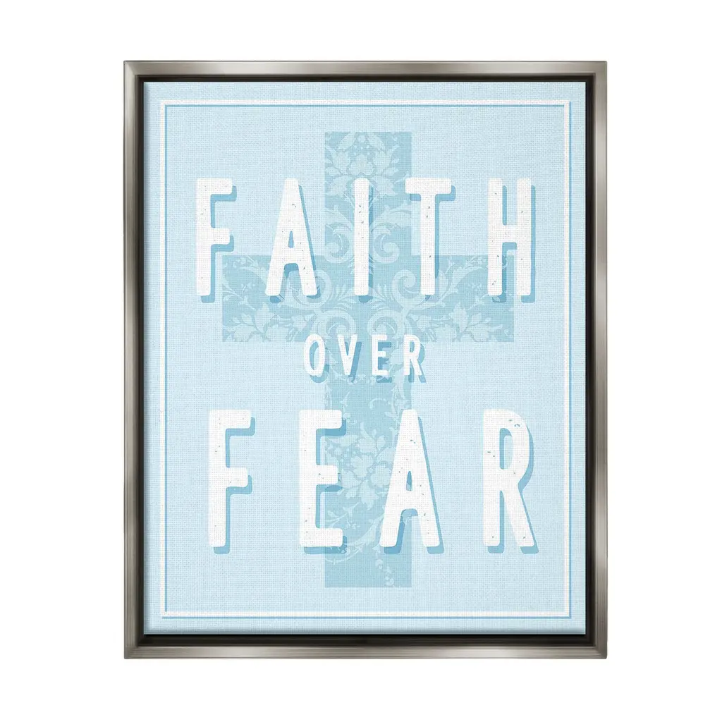 Stupell Blue Faith Over Fear Framed Giclee Art Design By Lil' Rue - 16 X 20 - Grey