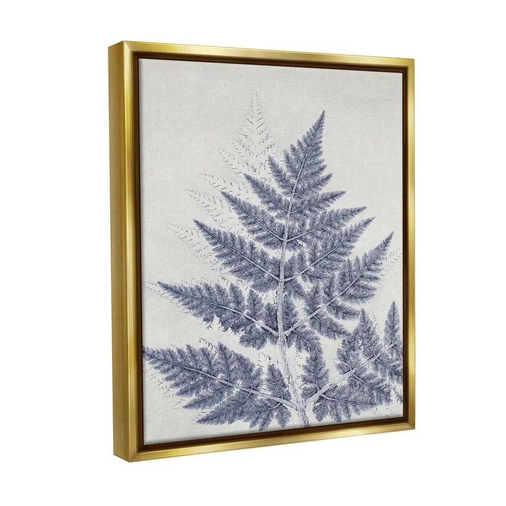 Stupell Blue Fern Imprint Framed Floater Canvas Wall Art Design By Pernille Folcarelli - 25 X 31 - Gold