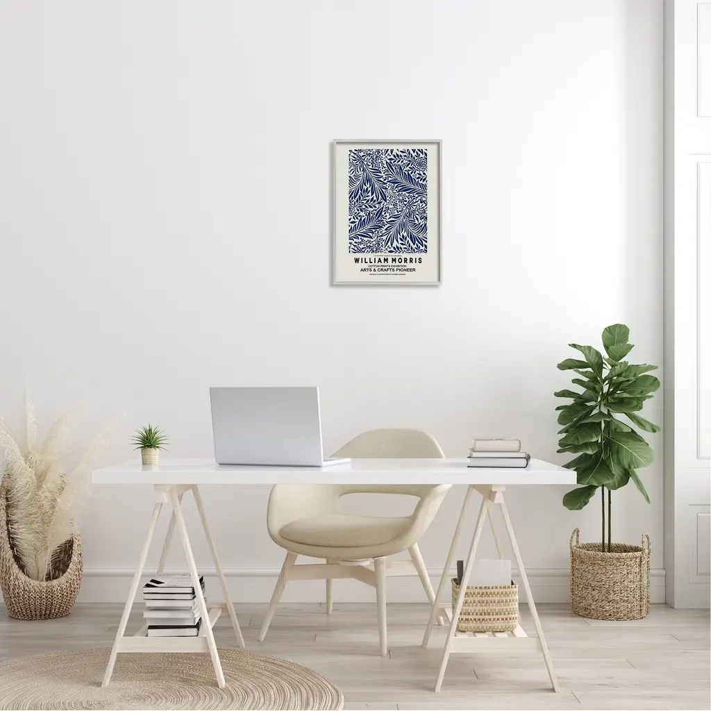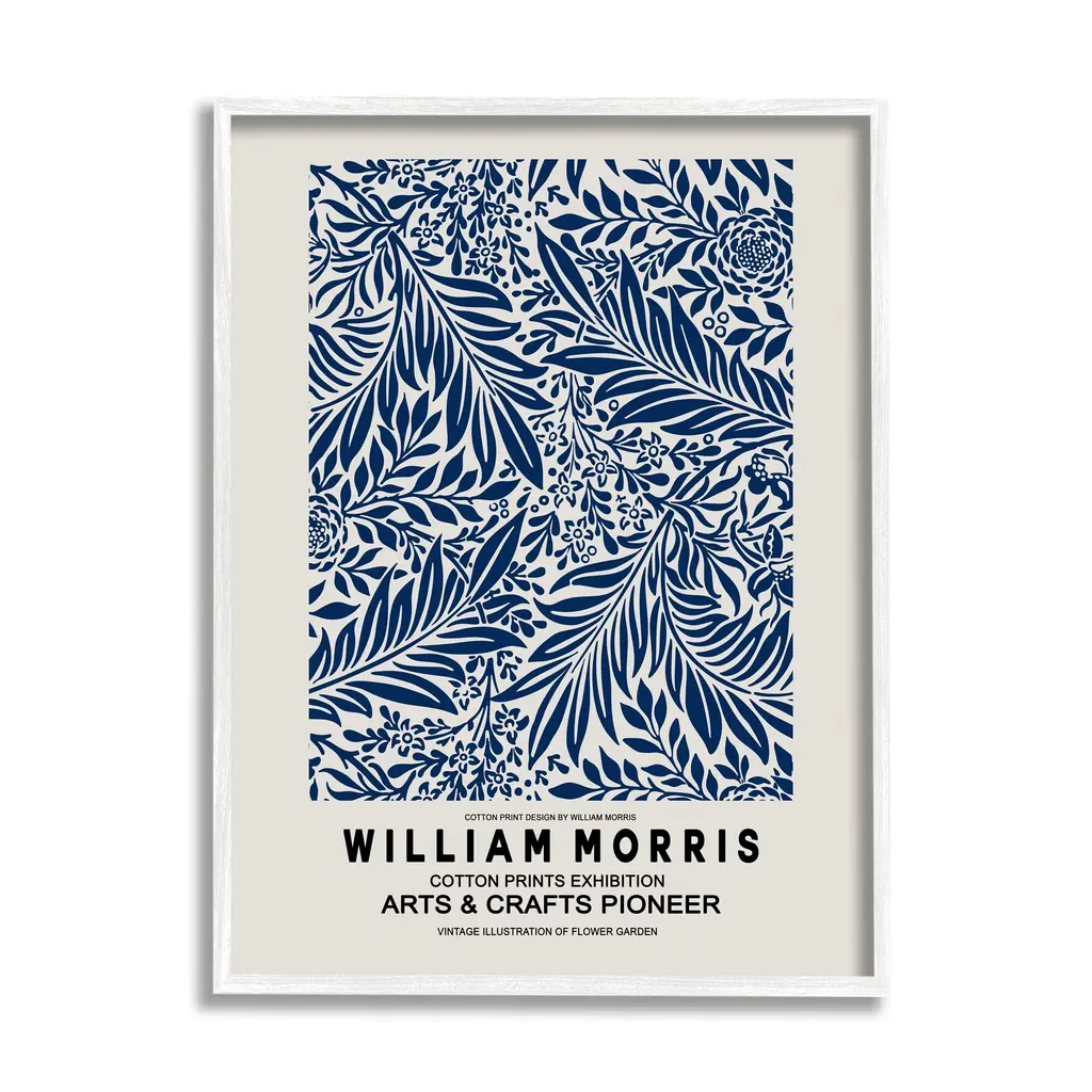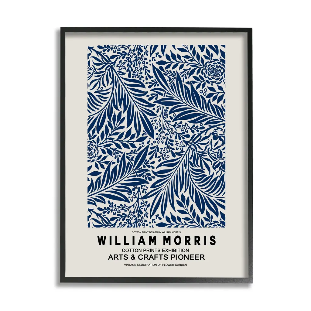 Stupell Blue Floral Leaves Botanical Pattern Exhibition Flyer Framed Wall Art - 16 X 20 - Grey
