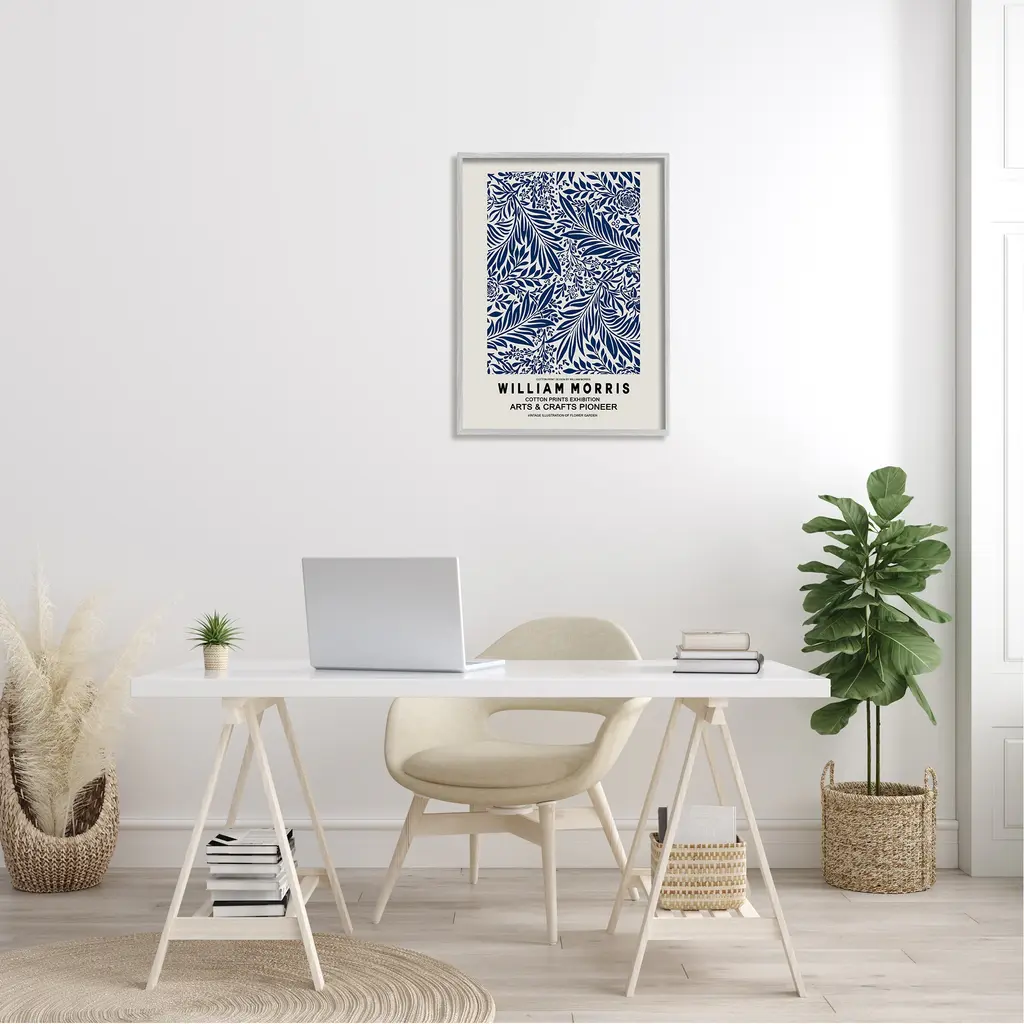 Stupell Blue Floral Leaves Botanical Pattern Exhibition Flyer Framed Wall Art - 24 X 30 - Grey
