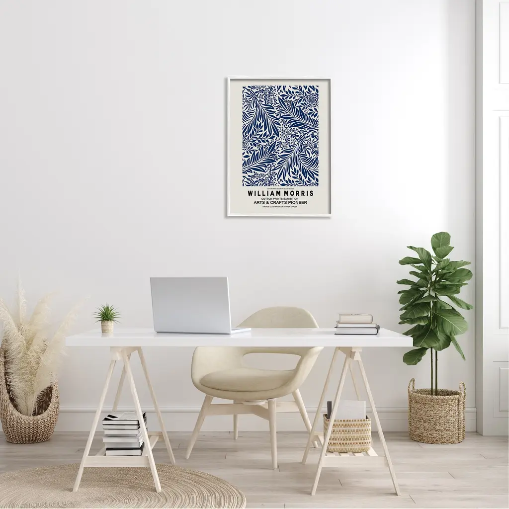 Stupell Blue Floral Leaves Botanical Pattern Exhibition Flyer Framed Wall Art - 24 X 30 - White