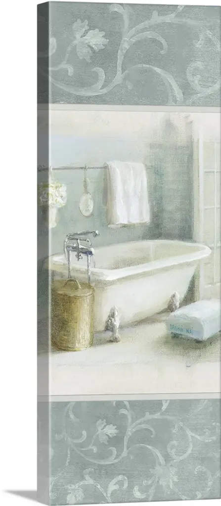 Elevate your home or office to the next level with Stupell Framed Floating Canvas Wall Art. Our premium hand-stretched canvas is mounted securely into a sturdy lightweight frame. The museum-style gap between the wrapped canvas and the box frame gives the illusion of floating artwork. Stupell Wall Art is made in the USA.Features: Dimensions: 18 x 1.7 x 18 Frame, 17 x 1.5 x 17 Canvas ArtFloating Frame Canvas Products are available in sizes 18"x18" and 25"x25". All Floating Frame Canvas Products have a 1.7" Depth.Wall Art is Ready to Hang with Hardware Free Hanging. No Installation required. For Easy Set Up Lean or Layer Artwork on Shelf or Against Wall. Artwork is Permently Fixed into the Frame.Our elevated 1.7" Thick Floating Frame is the perfect complement to our canvas style Wall Art. We use only the highest quality inks in house with industry leading printing solutions. Canvas is hand stretched over a durable wood foundation and then mounted securly into a Modern Box Frame. Made in the USA.Artwork Relates To: Bathtub, Tub, Flower, Blossom, Plant, Indoors, RelaxDesign by Kim Allen