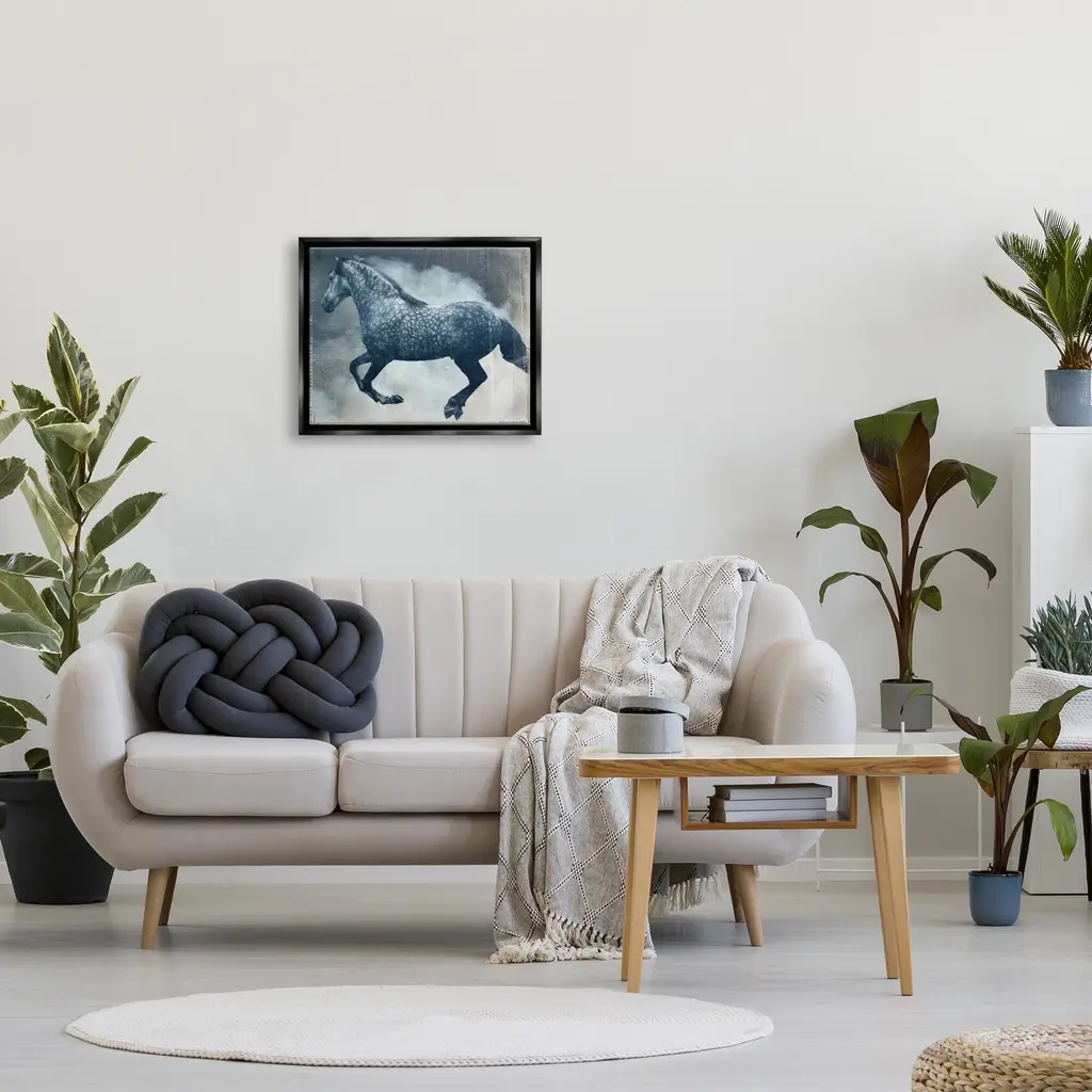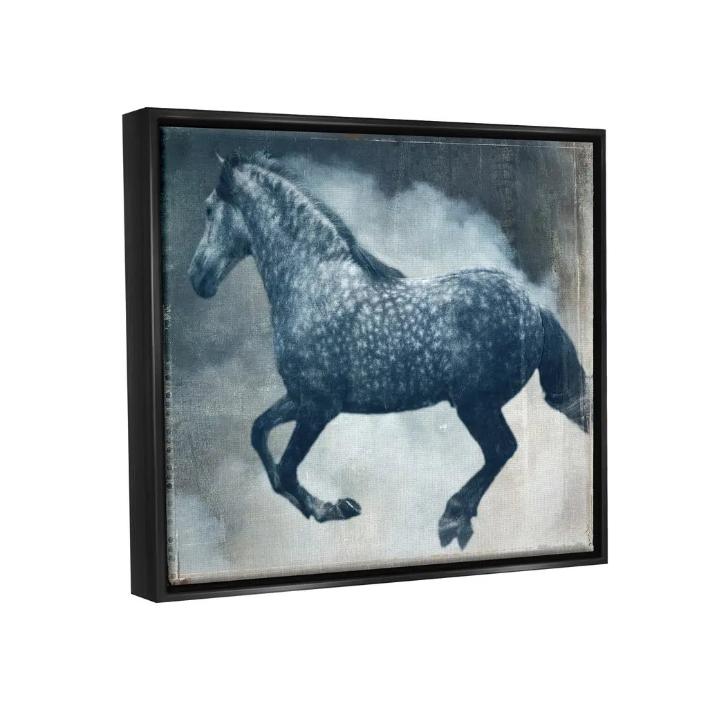 Stupell Blue Galloping Horse Vintage Framed Floater Canvas Wall Art By Susan Friedman - 20 X 16 - Black