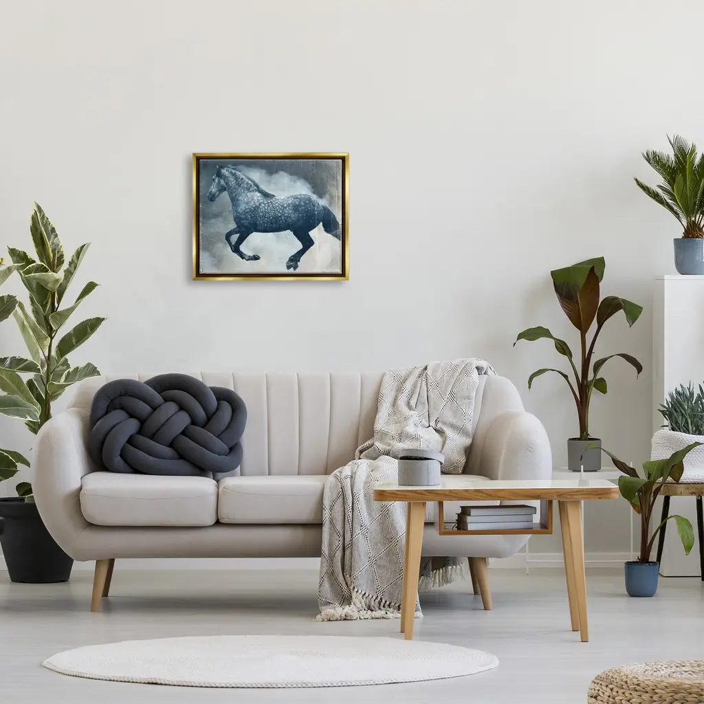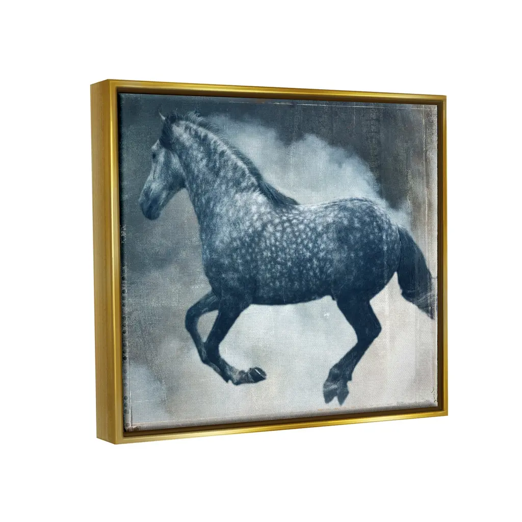 Stupell Blue Galloping Horse Vintage Framed Floater Canvas Wall Art By Susan Friedman - 20 X 16 - Gold